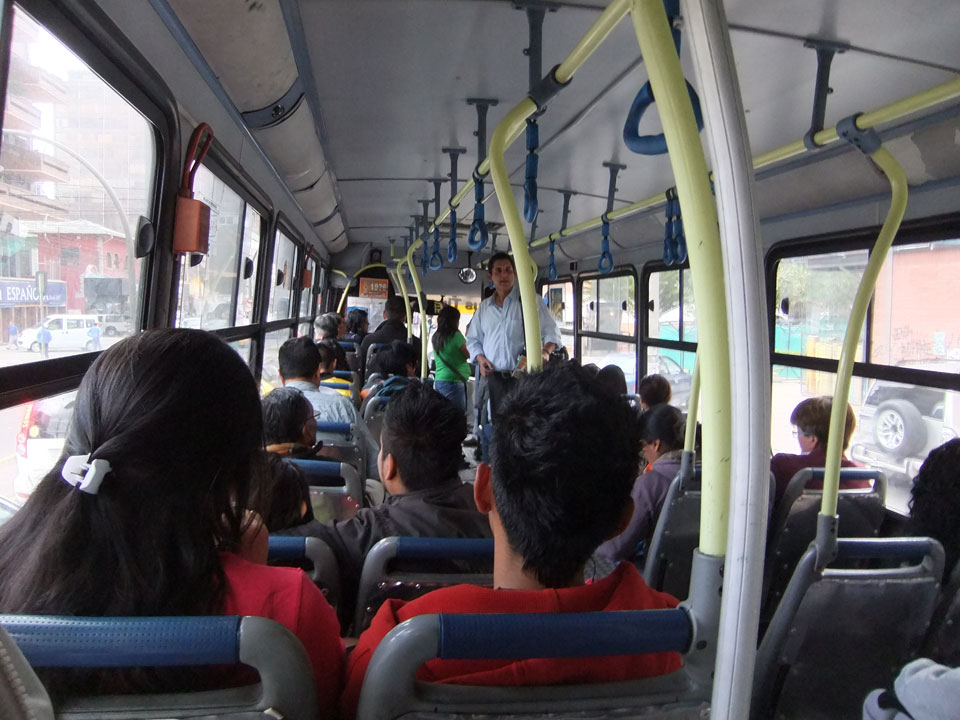 Die Busfahrer geben Gas und Bremsen ohne Rücksicht auf Verluste. Einer verkaufte irgendwelche Bücher im Bus – $1. Fahrende Händler überall.