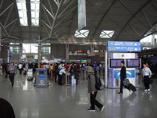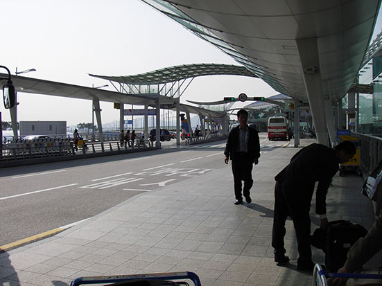 Bepackt wackelte ich zur Ub-Bahn Station und hatte keinen Plan, wo der Aiport Bus abfährt. Es gibt viele Bushaltestellen. Im Familiy Mart kaufte ich getrocknete Meerestiere und fragte nach der Haltestelle. Sollte gleich vor der Tür sein, doch kein Schild. Noch einen jungen Koreaner gefragt – 10 m wieder zurück und dann rief er mich — der Bus fuhr gerade vorbei. Ich schaffte ihn locker und in der 40 min zum Flughafen konnte cih etwas schlafen. Einchecken problemlos, bei Lotteria was zum Mittag und dann Warten auf’s Einchecken.