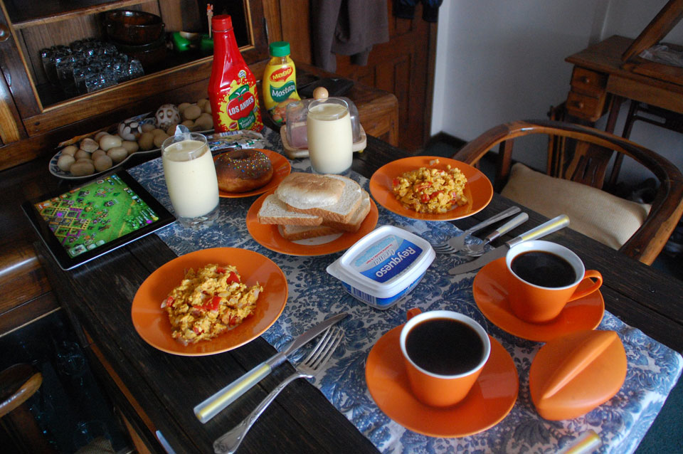 Wir fuhren dann zu SuperMaxi und holten so allerlei. Die Rechnung war dementsprechend höher als sonst – ganze $105. Inzwischen war’s spät und die Almuerzos vorbei. Ein Pollo ging noch, dann war ich froh, wieder zu Hause zu sein.