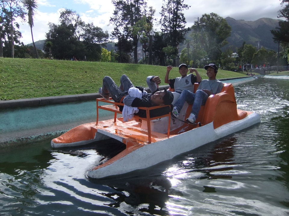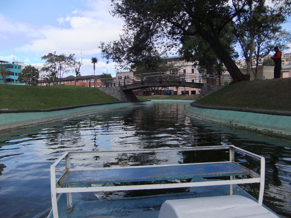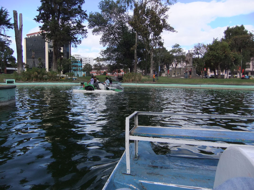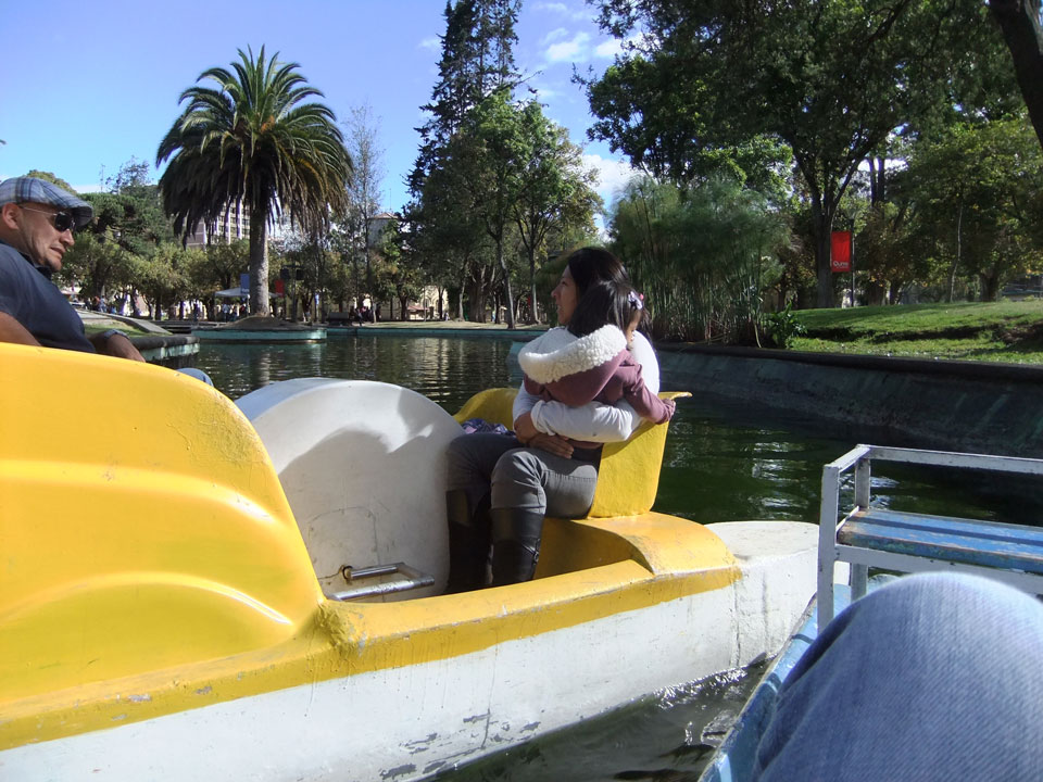 Kein Notar wollte das aber machen und ich fand das auch etwas Quatsch. So hatten wir Mittag mit gigantischem Pollo und gingen dann in den Park, weil kein Taxi zu bekommen war. Im Park war eine kleine Wasserrunde angelegt. So mieteten wir ein Tretboot ($2.50) und drehten eine Runde. Das Ding quietschte und ließ sich kaum steuern. Eine Runde reichte auch und ich kam gut in’s Schwitzen.