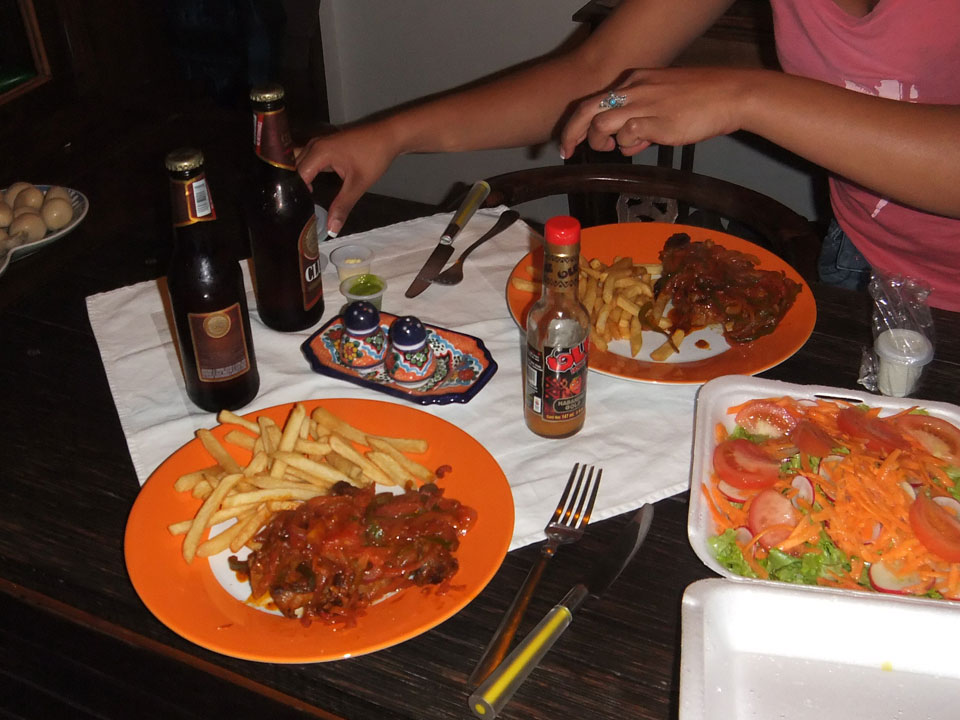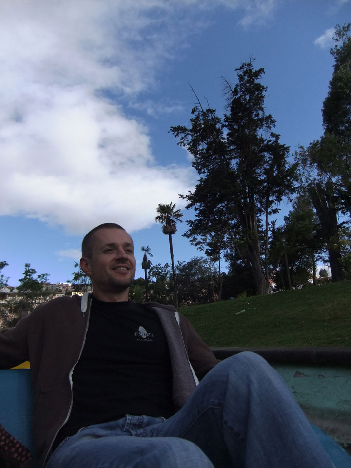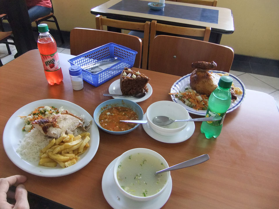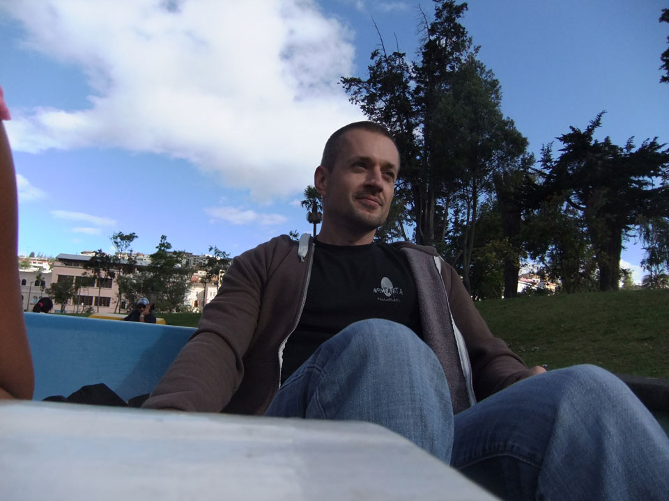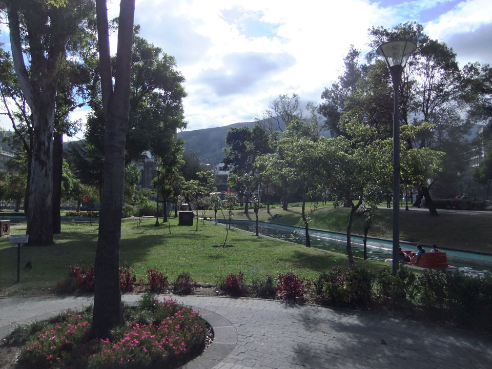 Kein Notar wollte das aber machen und ich fand das auch etwas Quatsch. So hatten wir Mittag mit gigantischem Pollo und gingen dann in den Park, weil kein Taxi zu bekommen war. Im Park war eine kleine Wasserrunde angelegt. So mieteten wir ein Tretboot ($2.50) und drehten eine Runde. Das Ding quietschte und ließ sich kaum steuern. Eine Runde reichte auch und ich kam gut in’s Schwitzen.