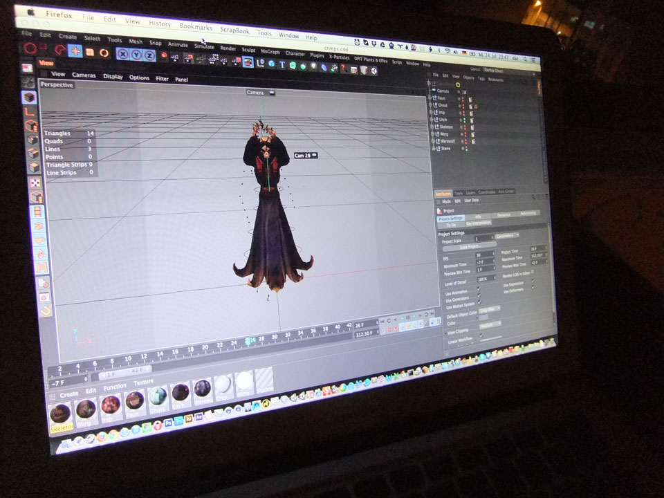 Der Auftragnehmer war heute etwas freundlicher, bot sogar an, die ganzen Sprites in Maya zu rendern. Ich will erst mal C4D probieren. Mit den Alembic Files wurde die Datei um die 150 Mbyte groß. Der Batch Renderer überprüft da jedes Mal jedes File nach Änderungen. Das Laden ist auch von der CPU abhängig. Ich machte eine RAMdisk in MacOSX aber das half nicht für eine bessere Geschwindigkeit.