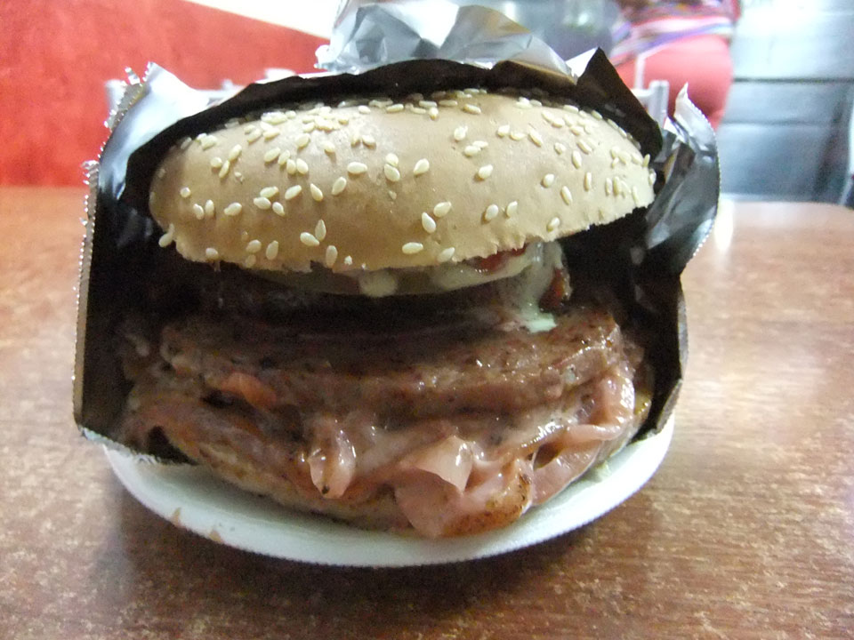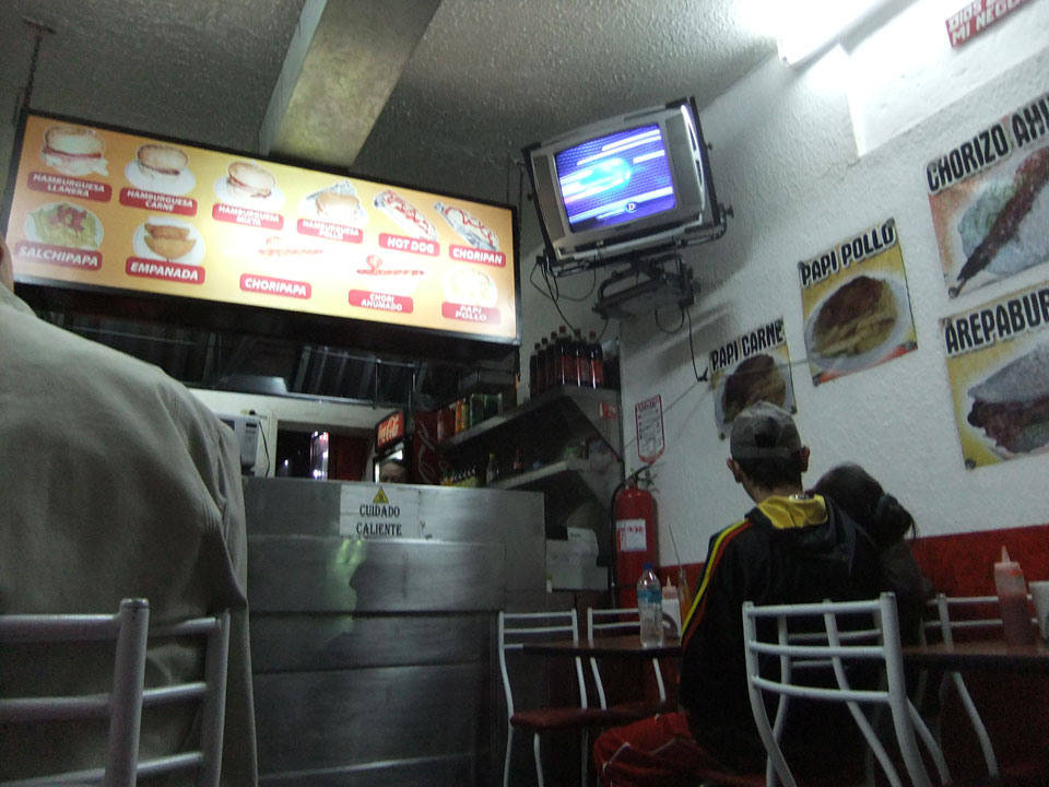 Wir spazierten zu einem Punto Rojo, der aber geschlossen hatte. Mit ’nem Taxi zur Cotado Mall, wo ein anderer war. Der Burger im Kolumbianischen Stil mit allem schmeckte exzellent. Ich hatte ordentlich Hunger, es gesellten sich auch noch ihre Mutter und ein Bruder hinzu. Günstig ging’s zurück in’s Apartment.