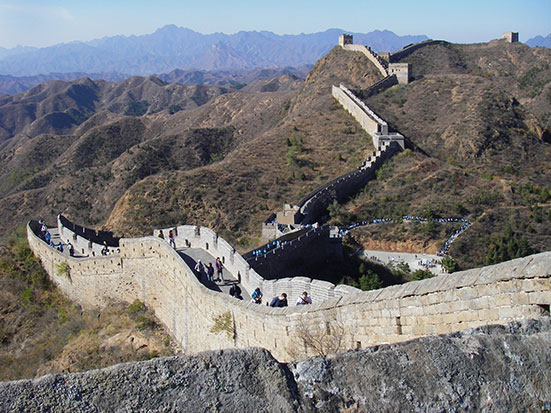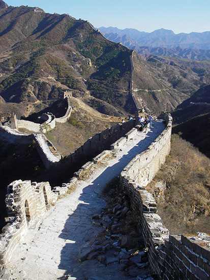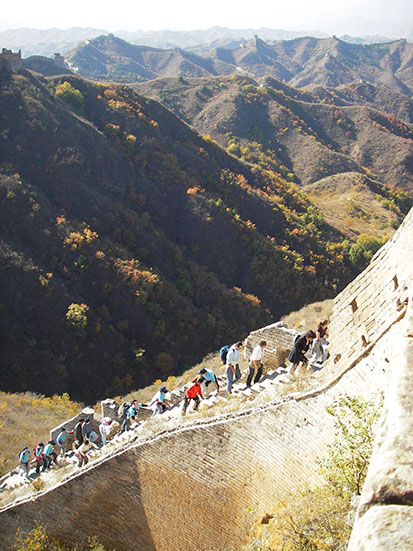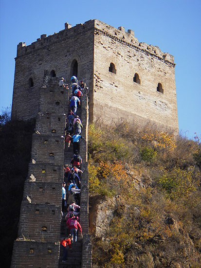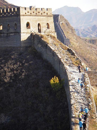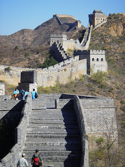 Die chinesische Mauer wurde ja schon oft im Fernsehen gezeigt. In Echt ist’s einfach unglaublich, wieviel Mühe der Bau gemacht haben muss. Rings herum sind steilste Berge und selbst auf der Mauer gibt es auf diesem Stück quasi nur Stufen!