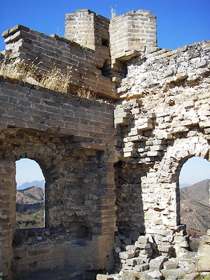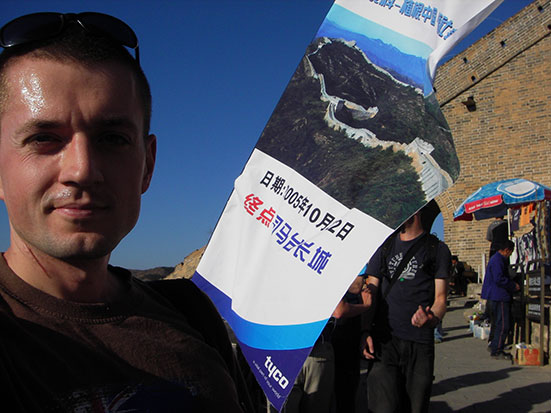Ich machte viele Photos und verlor nach und nach bissel den Anschluss an die Engländer, hatte aber noch andere Leute hinter mir. Die Tyco Truppe bremste manchmal, wenn es durch Nadelöhre in den Türmen ging. Ich fand’s wirklich super cool, dass hier fast nichts ausgebessert wurde. Die größten Teile der Mauer sind im Originalzustand oder was davon nach 500 Jahren übrig ist. Der älteste Teil war auch schon ganz schön verfallen. Kleinere Abschnitte musste man da neben der Mauer auf ’nem Trampelpfad laufen. Ich ließ mir Zeit und alles war gut.