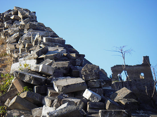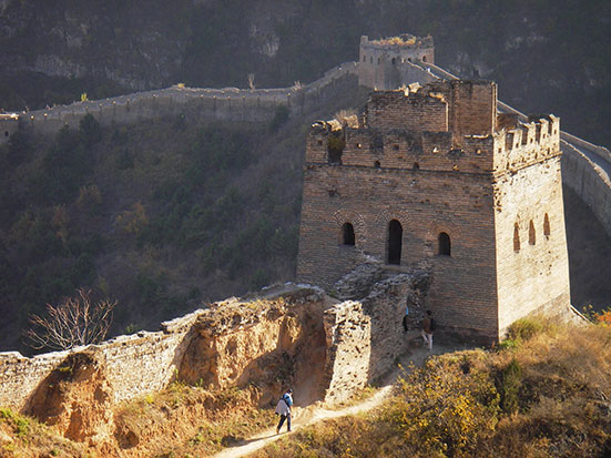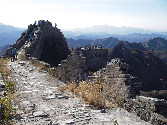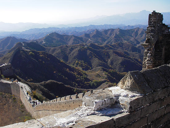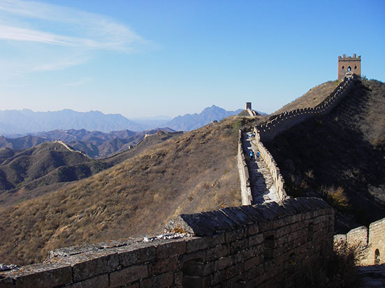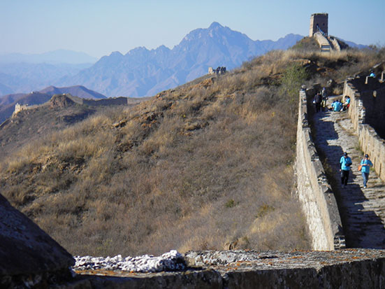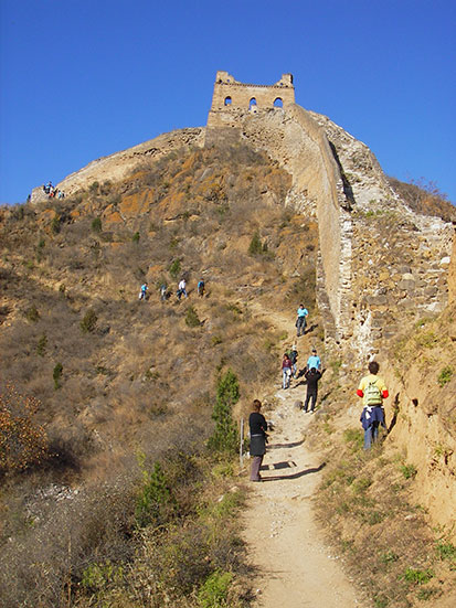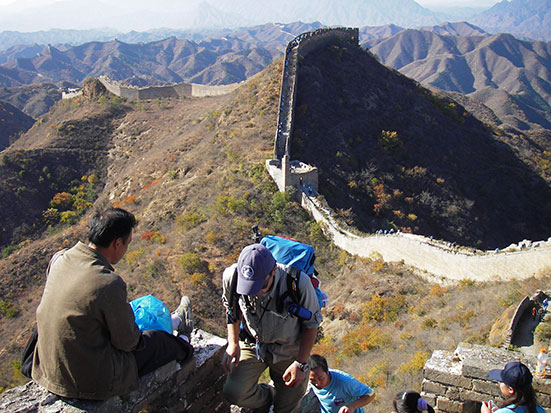 Kurz nach halb 8 traf ein Chinese ein. Ich lief mit ihm in schnellem Schritt zu einem Minibus, wo schon gut 10 andere Backpacker müde drin saßen. Kam mit ein paar Engländern in’s Gespräch, bis wir dann in einen größeren Bus umstiegen. Die Tour bis zum Startpunkt dauerte 4 Stunden und sollte dann 4 Stunden zu Fuß über die Mauer nach Simatai gehen. Dort wollte der Bus dann 15:30 ablegen. Klang super!