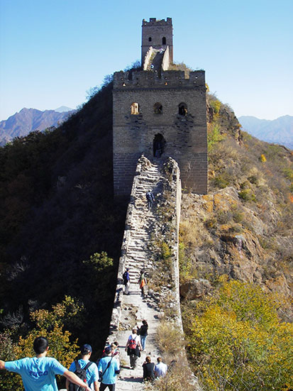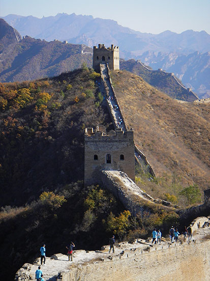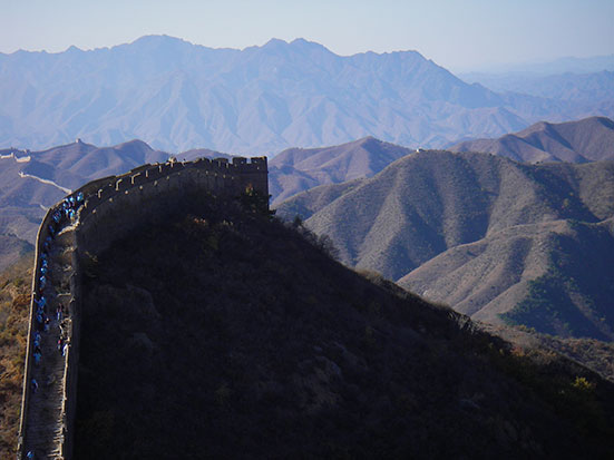 Mitten auf der Strecke wurde wieder zur Kasse gebeten. Wieder 30 Yuan sorgten unter einigen älteren deutschen Touries doch für garstige Stimmung. Ich wusste von der Doppelgebühr und war weniger überrascht. In China klebt eben fast überall ein Preisschild dran und was sind schon 3 EUR… Wunderschöne Landschaft und das perfekte wolkenlose Wetter. Kein Hunger und Durst dank ausreichend Verpflegung. Man kann auch bei den vielen Mongolen was Essbares kaufen und deren Mauerwirtschaft in Gang halten. Am Ende waren es gut 200 Bilder.