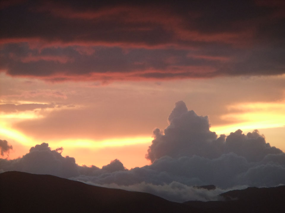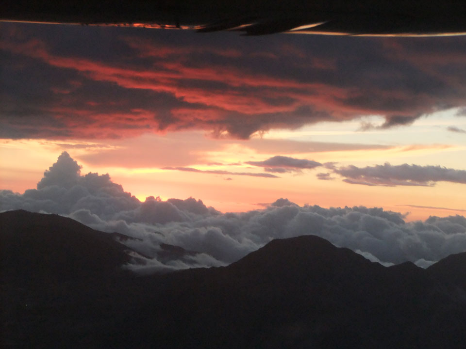 Der TAME Flug in einer Turboprop. Das wackelte doch etwas mehr als in ’nem Jet. Einen schönen Sonnenuntergang und Blick auf Cotopaxi gab’s heute.