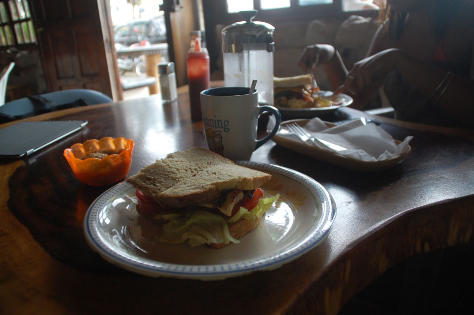 Trübe sah es heute aus. Das Wetter an der Küste wird erst gegen Oktober wieder besser und es gab heute keine schöne Überraschung – alles wie erwartet. Wir gigne im Surf Shak frühstücken und ich organisierte gleich einige emails auf dem iPad.