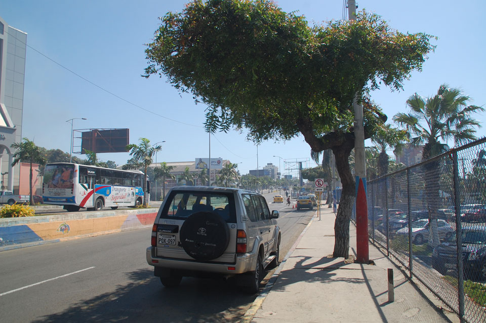 Wir gingen zur Bushaltestelle und warteten auf eine Transportmöglichkeit. Wir wusste, dass es von hier nach Manta per Taxi ungefähr $45 kosten würde. Ein junger Typ rief Taxi und sagte zwischen $35 und $40 – ab ging die Fahrt. So saßen wir im Prvattransport nach Manta – quasi nur $30 mehr als mit dem Bus, der mit dem langen Halt in Portoviejo um die 6h brauchte.