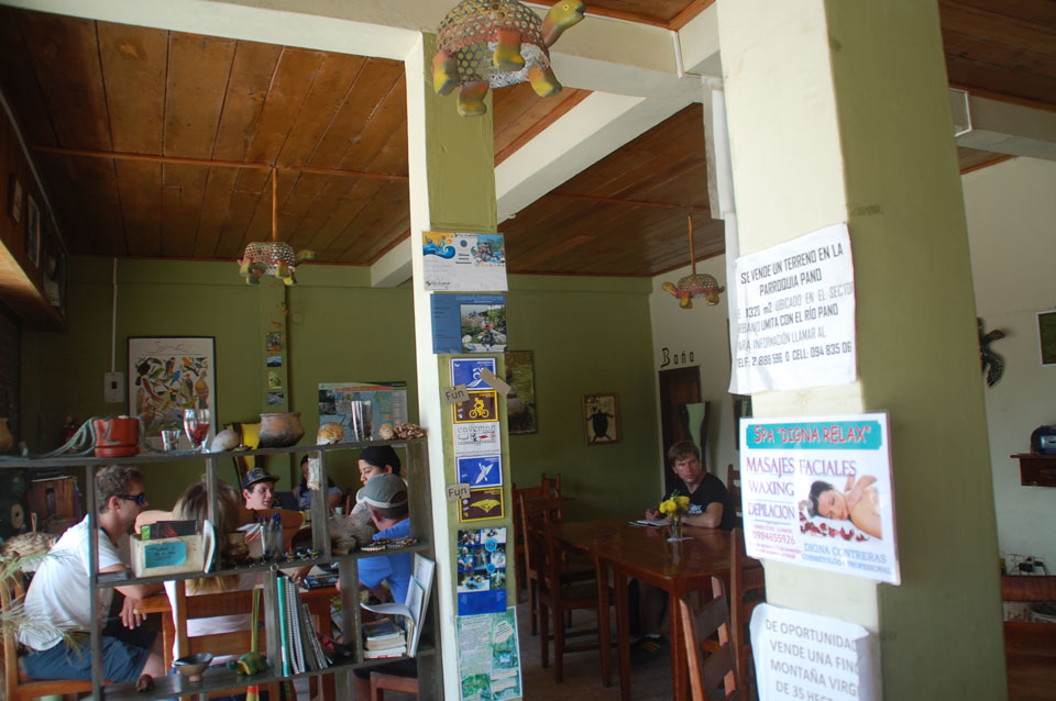 Im Café Tortuga gab’s ein großes Frühstück. In Tena scheint as Café ein Toursitenmagnet zu sein. Ein paar Iren hatten ihre Mittagsbier und auch eine Menge Deutsche von ’ner Entwicklungshilfe kehrten da ein.Es dauerte eine Weile, bis wir da wieder draußen waren. Pancake und Tortuga Burger waren gut.