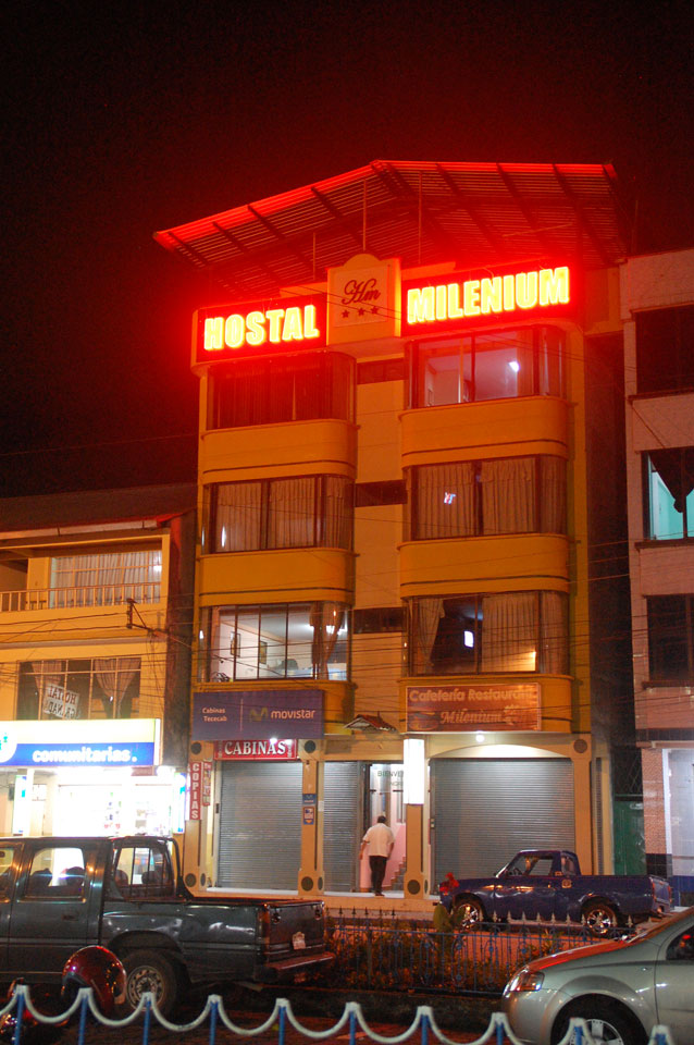 In Puyo gab’s nicht so viel zu sehen, ich wollte vielleicht scgon gleich weiter nach Baños aber wir nahmen dann doch ein Taxi für ’nen Dollarito und nahmen ein Zimmer im Hotel Millenium (2 x $12 = $24). Kleines Zimmer, recht großzügiges Bad. Erst mal chillen bei fixem aber auch wackeligem Internet.