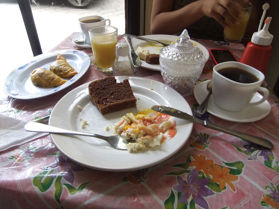 Jemand und auch ich waren jetzt sehr zufrieden. Das Zimmer viel besser, das Internet schnell. Wir relaxten ein wenig nach den Busfahrt und gingen was Essen. Die Gegend um’s Alexander ist nicht ganz so nett aber einen Steinwurf vom Hotel entfernt waren Krabbenrestaurants. Ich hatte ein KrabbenCeviche, jemand zwei Cangrechos. Alles schmeckte hervorragend für $18. Wir gingen noch in der Gegend herum. Ohne Mittagessen hatte ich selbst nach dem Abendessen noch etwas Hunger und kaufte ein Eis, später noch ’nen Kuchen.