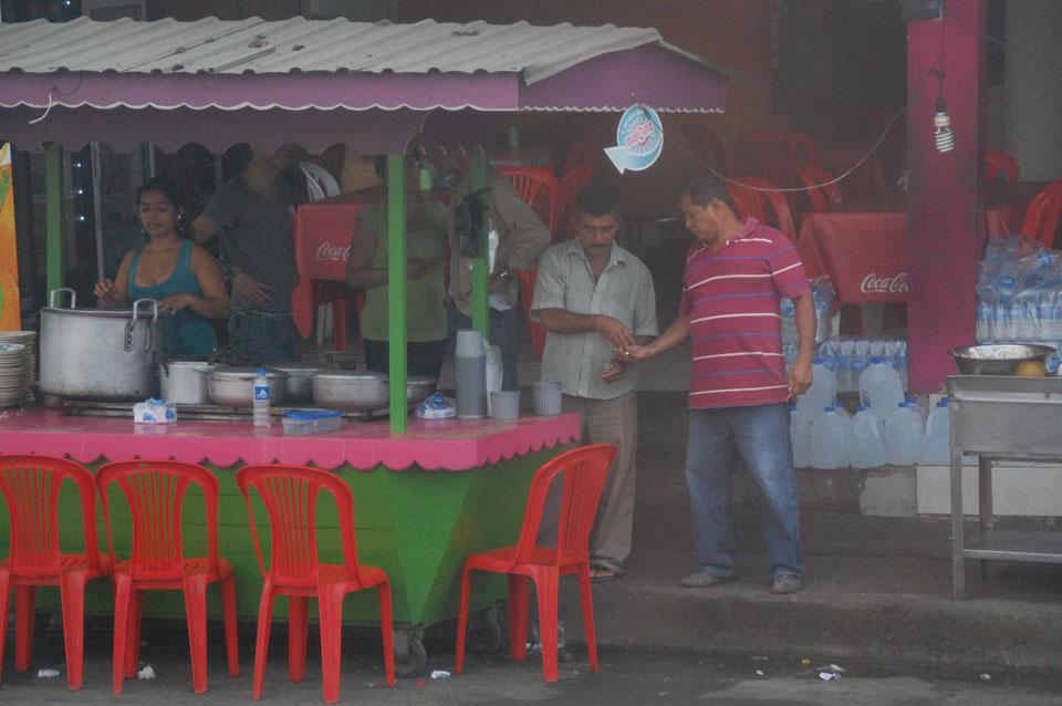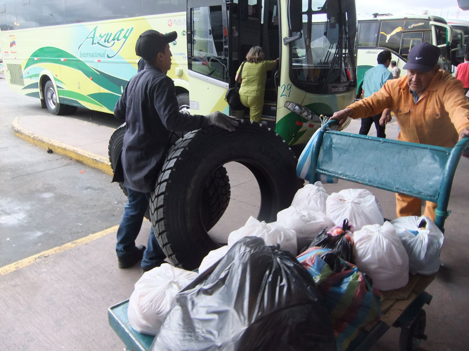 In einem winzigen Café frühstückten wir, dann per Piraten-taxi zum Busbahnhof. Der Fahrer plapperte viel und mir war etwas onwohl bei der Sache. Es ging aber gut. Das Ticket nach Guayaquil über Cajas kostete $8 pro Nase für die 4 Stunden Fahrt, Etwas mehr als sonst.