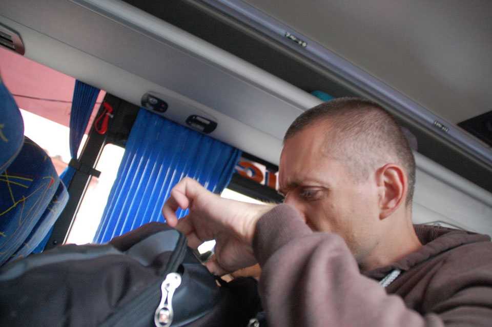 Wir hatten Sitze in der zweiten Reihe und mit meinem Rucksack weniger Platz. Ich bekomme bei unbequemen Busfahrten schnell schlechte Laune. Heute suchte ich meine Kopfhörer, die ich nicht fand. Etwas texten auf dem Mac ging aber doch noch.