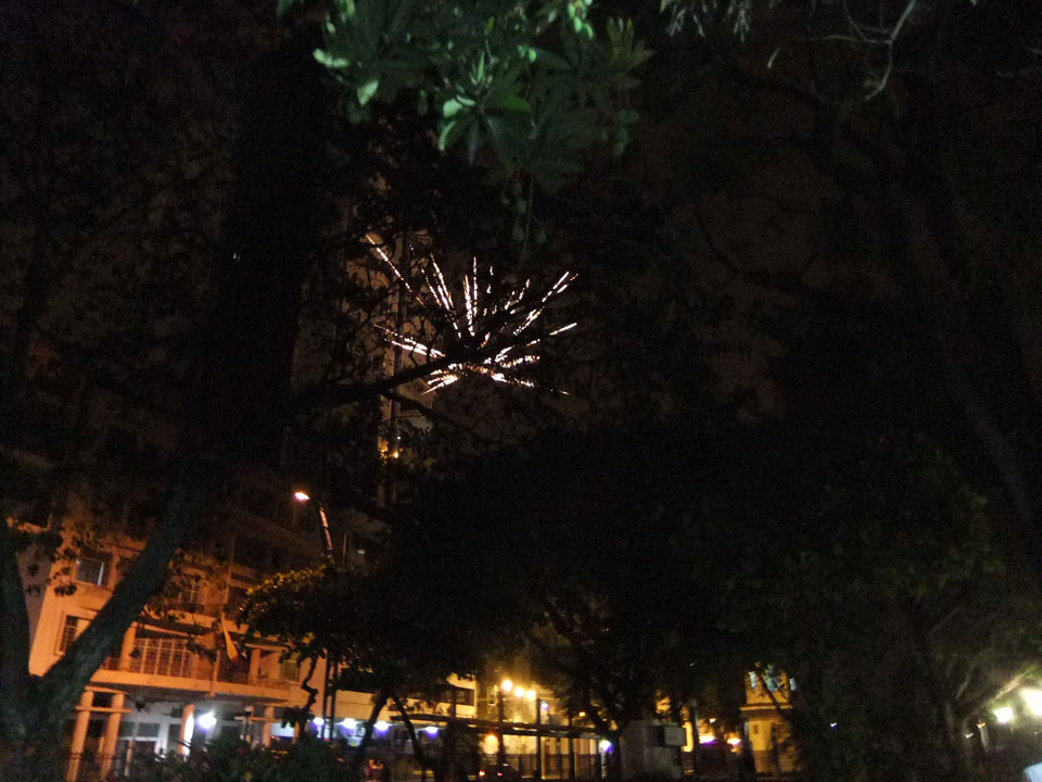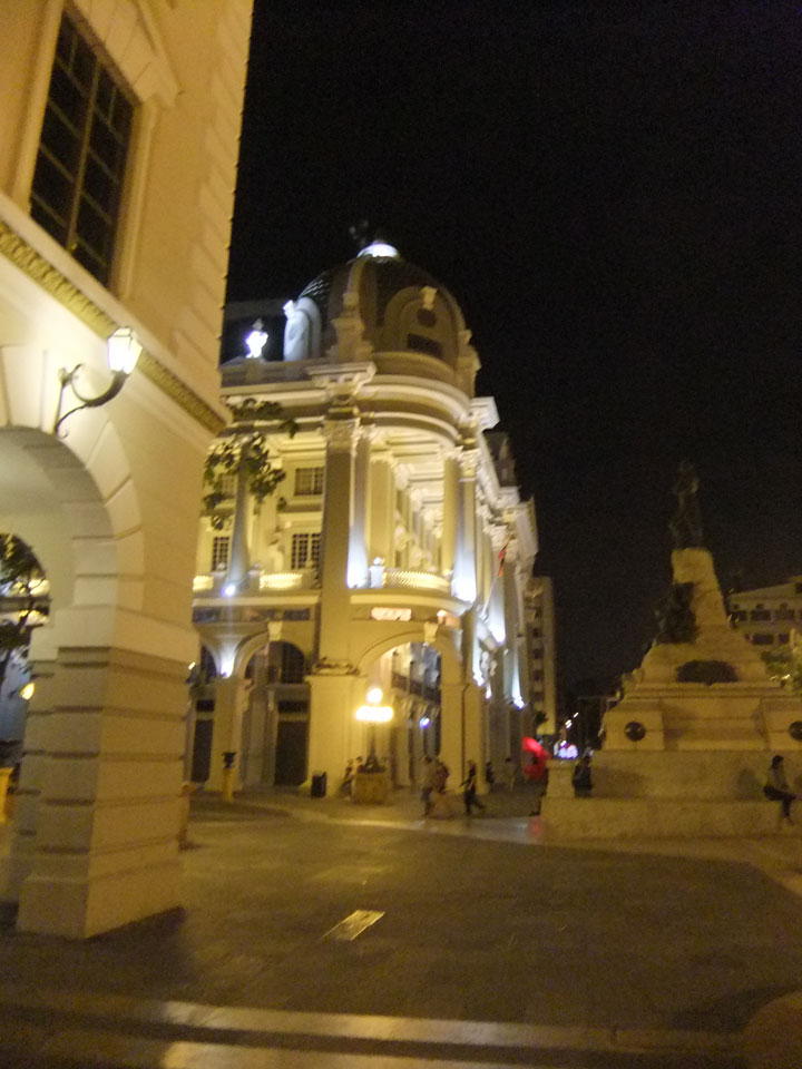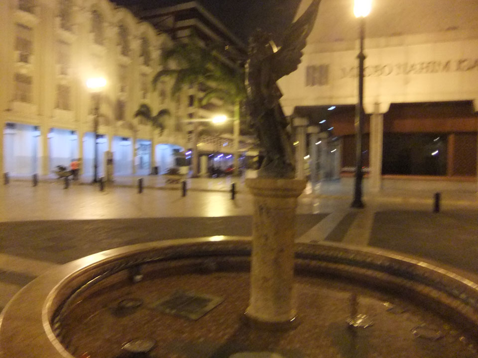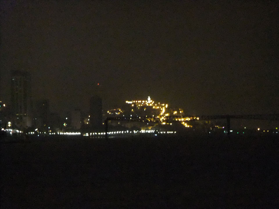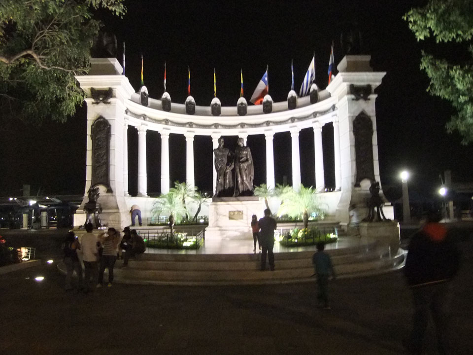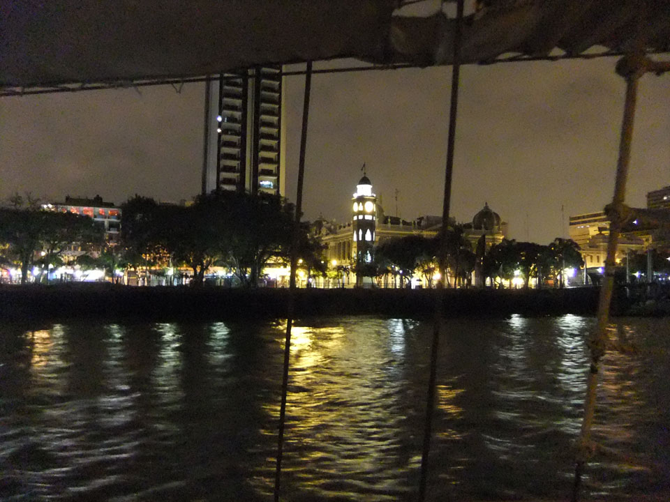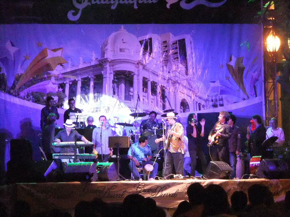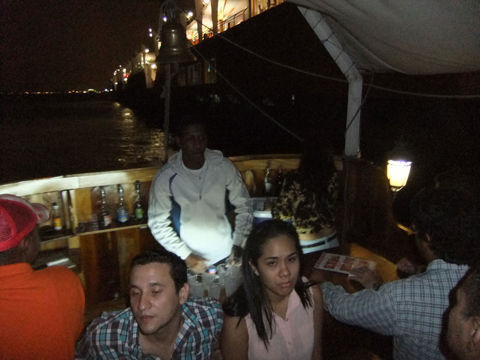 Wir verabredeten uns gegen 22:00 zum Melcon mit dem Engländer und waren dann auch gegen 22:30 dort. Das Partyboot sollte 23:30 öffnen und Mitternacht ablegen. Wir kamen an der Av, 9 de Octubre an, sahen die beiden, redeten erst ein wenig und spazierten dann auf der Maecon entlang und auf diversen Plätzen. Heute hatte Guayquil ein kleines Stadtfest, ein paar Musikgruppen spielten auf. Jemand sah atemberaubend im neuen Kleidchen aus.