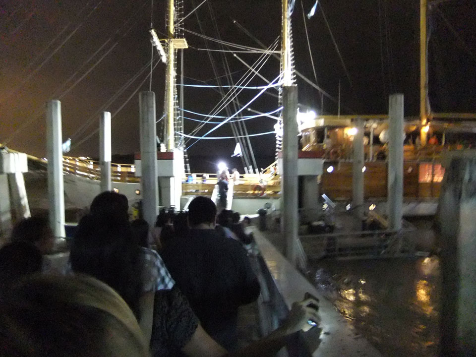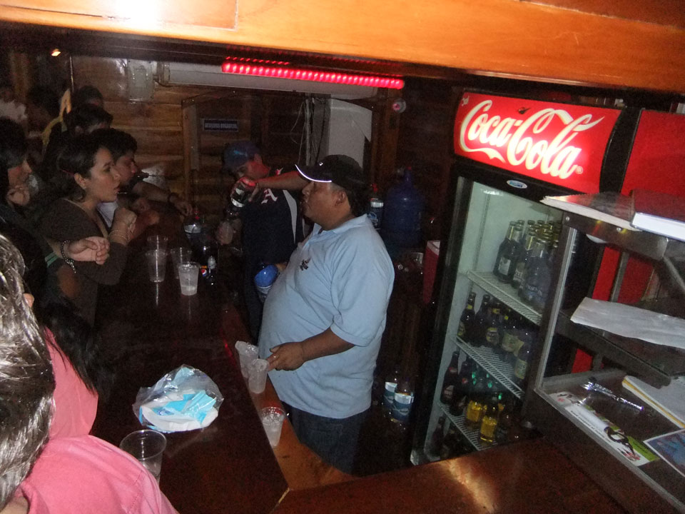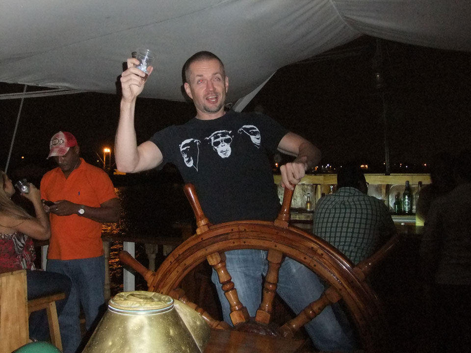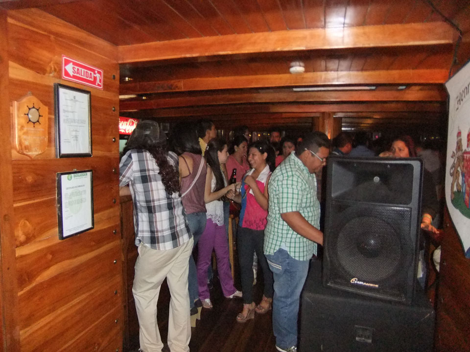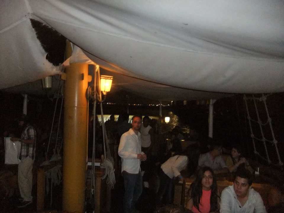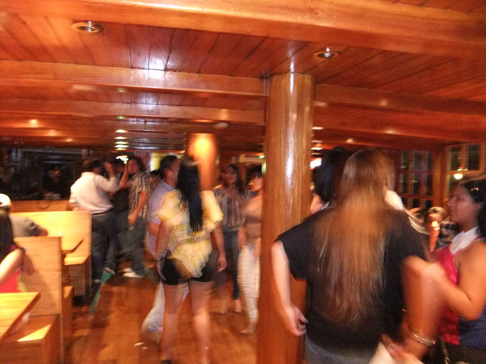 Schließlich war es Zeit für das Schiff. Ein paar Leute standen schon an, ich wollte vor dem Alkohol noch was essen und sah McDonalds. Mein erster BigMac seit über 4 Monaten, dazu noh ein Eis. Schließlich ging’s los auf das Partyboot und die Party war nett. Sitzplätze hatten wir erst keine, später aber tanzten wir noch bis weit nach 2. Die Tour ging zuerst nach links, dann rechts und wieder zurück. Viele Ecuadorianer auf dem Boot. Die Drinks waren ganz OK und so war der Preis voll gerehctfertigt. Ich hatte um die 4-5 Rum & Coke, etwas wenig Rum aber das war gut. Beschwipst waren wir gegen 3 wieder im Hotel und so schlief ich gut ein. Wieder ein guter Tag, muss mehr arbeiten.
