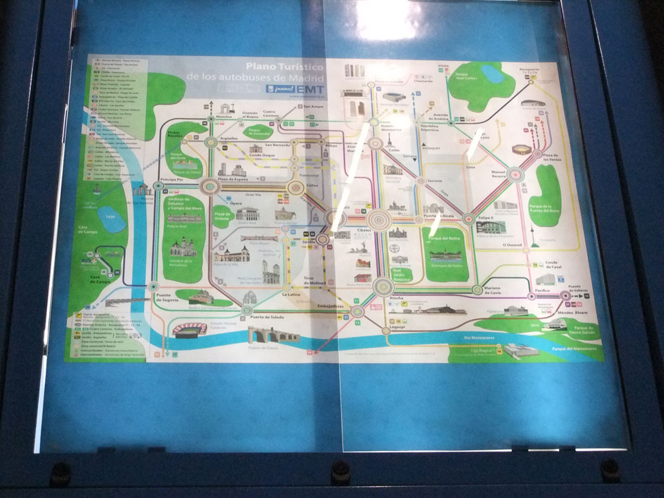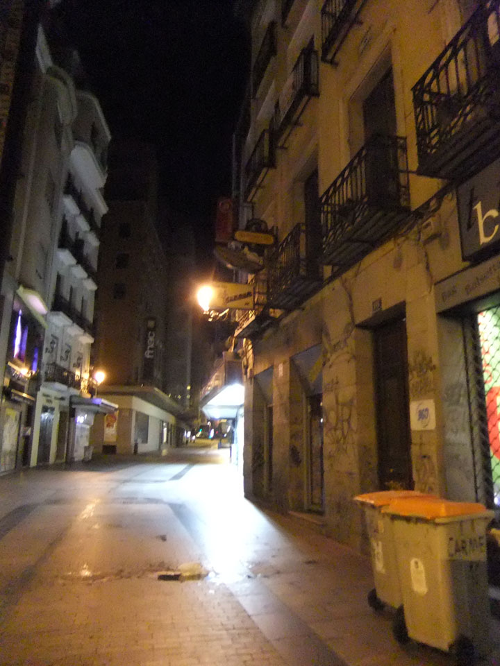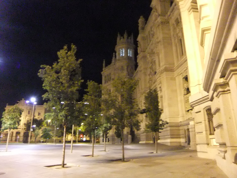 In Madrid war’s dann fast 3 Uhr nachts. Ich dachte erst an Taxi aber es gab ’nen Bus in’s Zentrum (€5). Die Fahrt war lang, von dort dann mit dem Taxi in die Nähe des Hostels (Fußgängerzone). Jetzt war’s inzwischen um 5. Ich checkte ein, sie hatten trotz meiner email schon die no-show Nacht gebucht. Um die Zeit war noch einiges los im Hostel – spanische Nächte sind lang. Mein Zimmer (2 Personen Dorm) war für mich privat. Jetzt war ich wieder munter aber kam gegen 7 doch noch zur Ruhe. Nun also mal wieder in Madrid, das klappte ja doch noch gut.