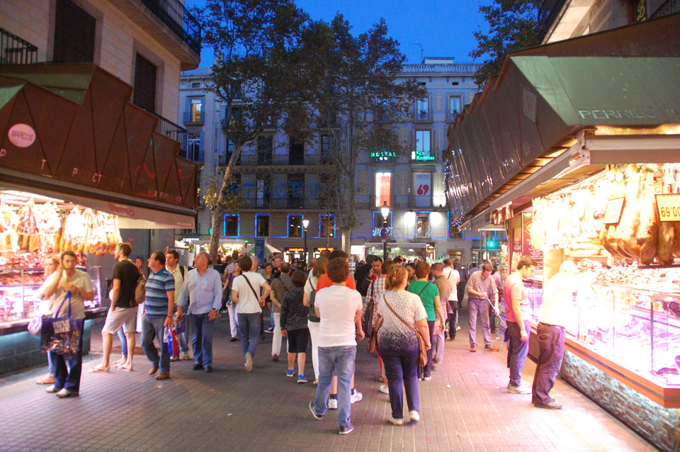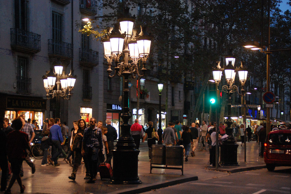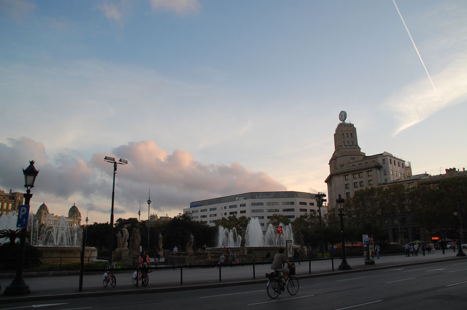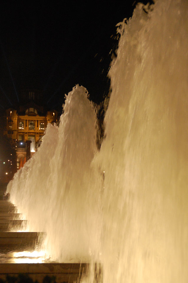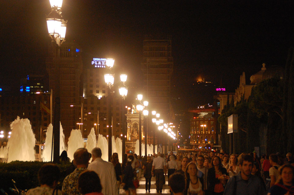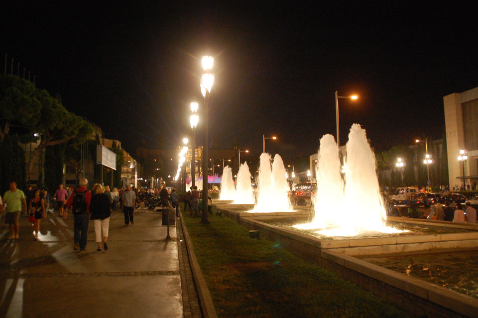 Ein paar Stationen zurück zum Paseig de Gracia und von dort runter zum Catalunya und wieder auf die Ramblas. So war der Nachmittag schon vorbei. Ich ging auf den Markt, trank und aß dann was bei Wok to Walk. Dort auf der Ramblas erwischte ich die falsche Richtung it der Metro, was sich aber als richtig erwies. Ich hatte ganz vergessen, dass Freitags auf dem Plaza España eine Springbrunnen-Show stattfindet. So war’s gerade nach 8 und ich sah den Rest. Viele viele Leute auch da.
