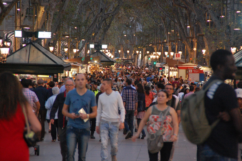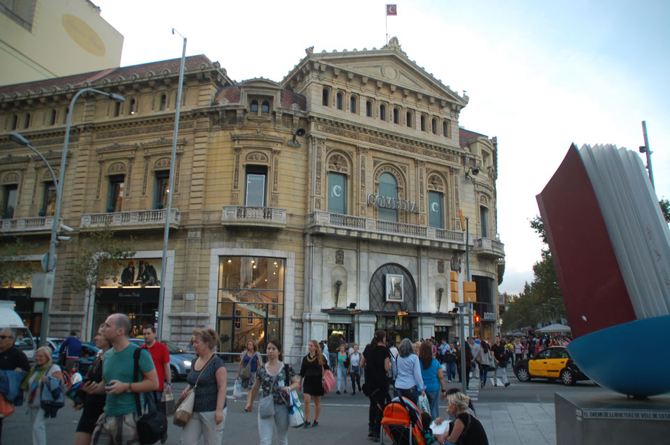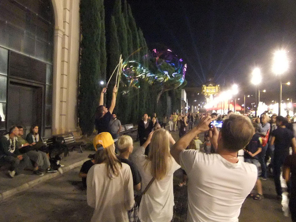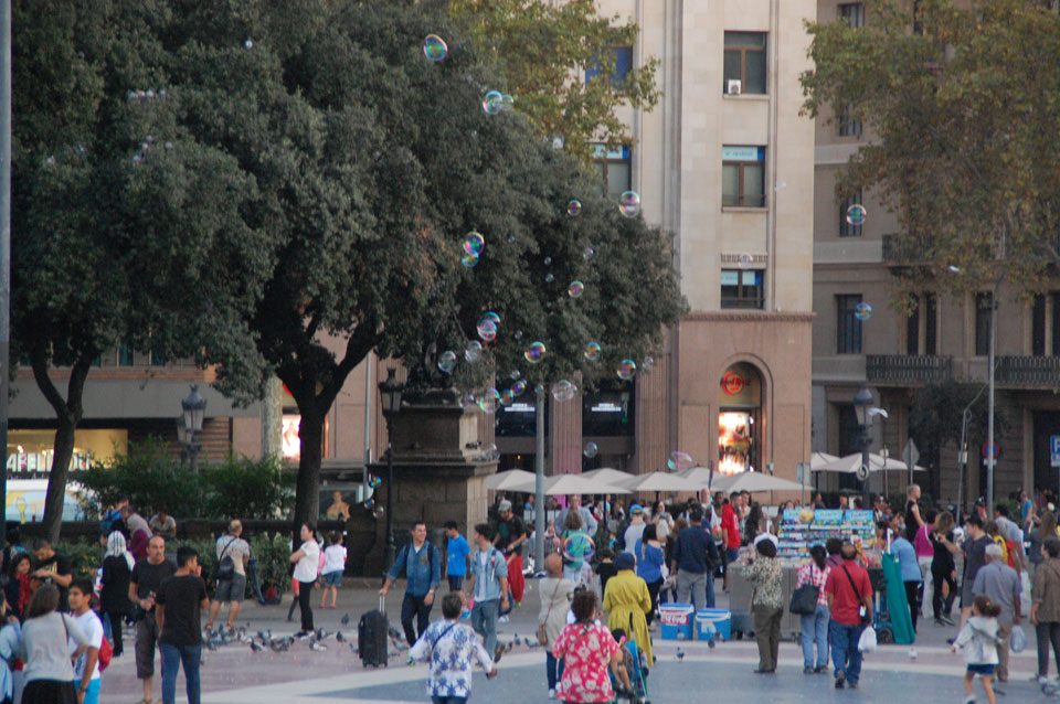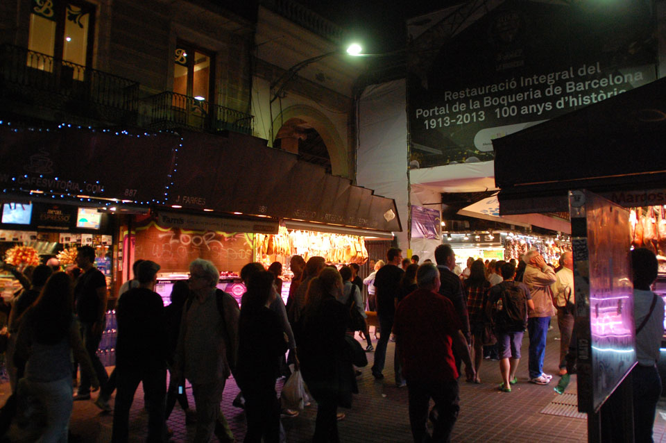 Ein paar Stationen zurück zum Paseig de Gracia und von dort runter zum Catalunya und wieder auf die Ramblas. So war der Nachmittag schon vorbei. Ich ging auf den Markt, trank und aß dann was bei Wok to Walk. Dort auf der Ramblas erwischte ich die falsche Richtung it der Metro, was sich aber als richtig erwies. Ich hatte ganz vergessen, dass Freitags auf dem Plaza España eine Springbrunnen-Show stattfindet. So war’s gerade nach 8 und ich sah den Rest. Viele viele Leute auch da.