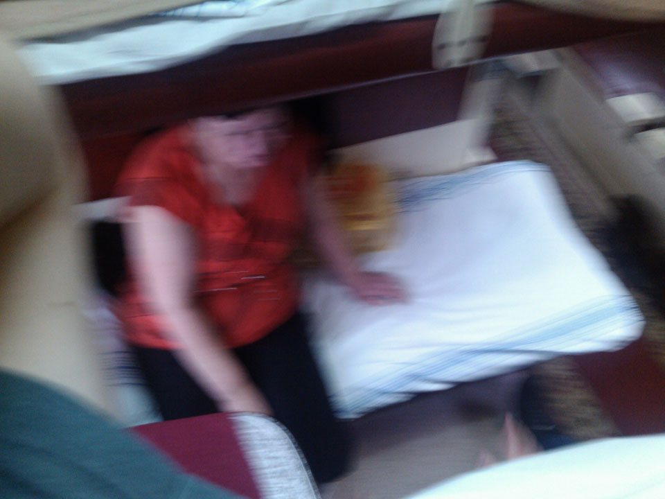 Lustige Leute im Platzkarte Abteil. Es gab Vodka, den ich natürlich auch russisch auf ex kippte. Eigentlich ist Alkohol nicht erlaubt aber ’nen Vodka darf man nicht ablehnen. Dazu bekam ich Brot mit Wurst und gab zum Ausgleich meine 300g Ja! Schokolade aus dem REWE. Das Nachbarkind freute sich auch, die Frau meinte auch ‚vkusna‘.