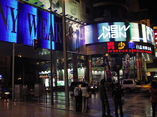 Nach ’nem Essen schaute ich nach Schuhen. Die sind auch als Originale mehr als 50% billiger als in Deutschland aber meine Größe war wohl populär. In ein paar Seitengassen gab’s Läden mit etwas interessanteren T-Shirts als einfach mit fette Marken zu posen. Wirklich coole Sachen, die aber irgendwo immer einen Haken hatten (z.B. Pink als Farbe). Anyways, Essen, ein normal gemütliches Kapuzenshirt von ’nem normalen Laden und dann wieder durch den Regen zurück ins Hostel.