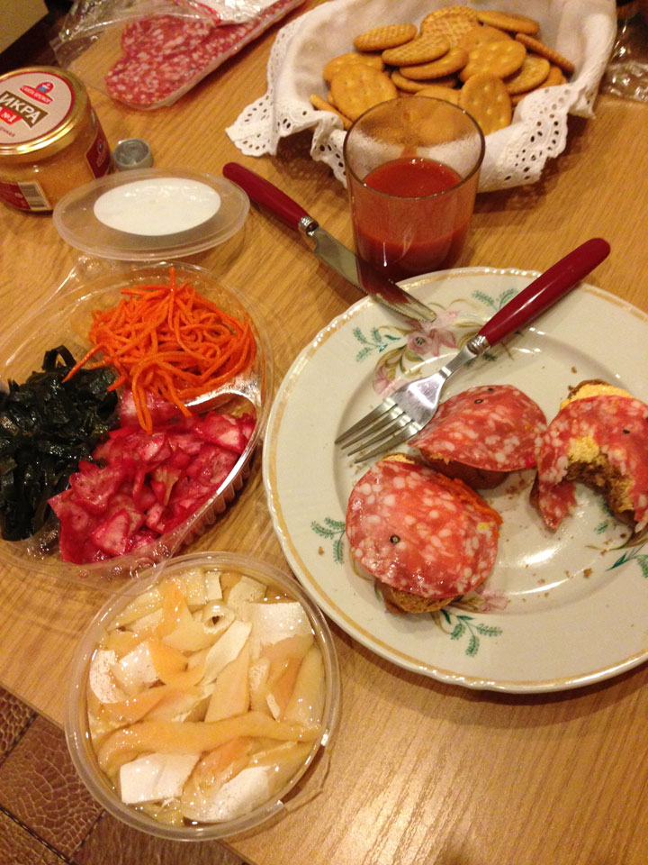 Mittags in Donetsk kam der Zug an. Das Wetter trübe. Ich ging erst mal Geld holen und hatte dann etwas Frühstück in einem Mini-Restaurant. Mit dem taxi zum Hostel. Mein Zimmer noch beleget, also warten.