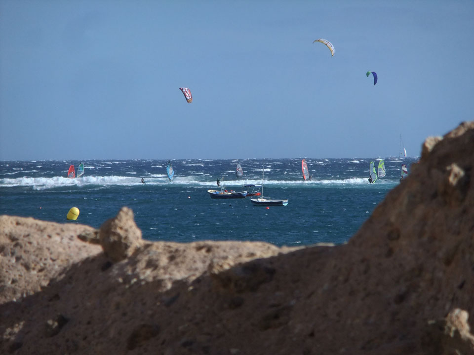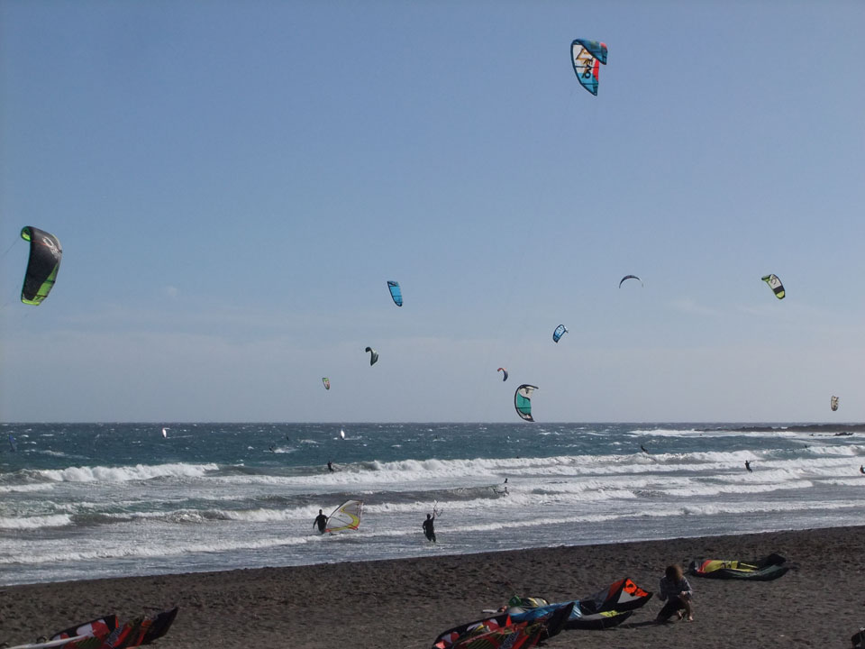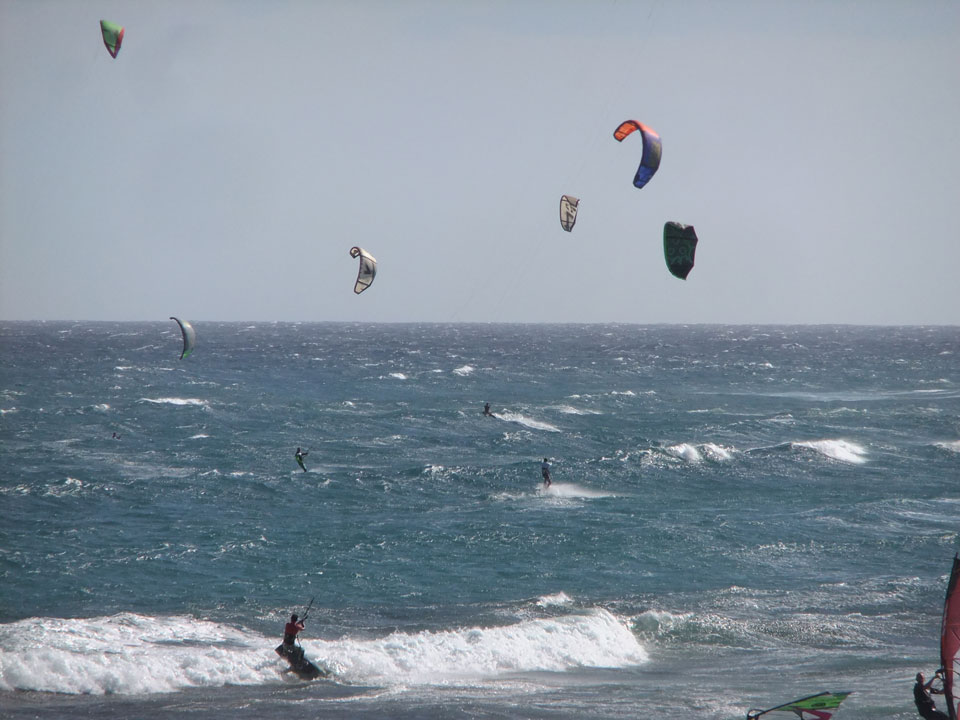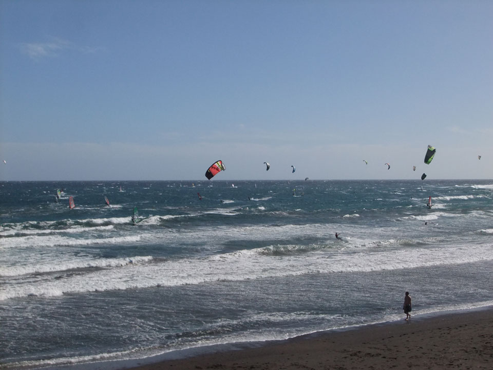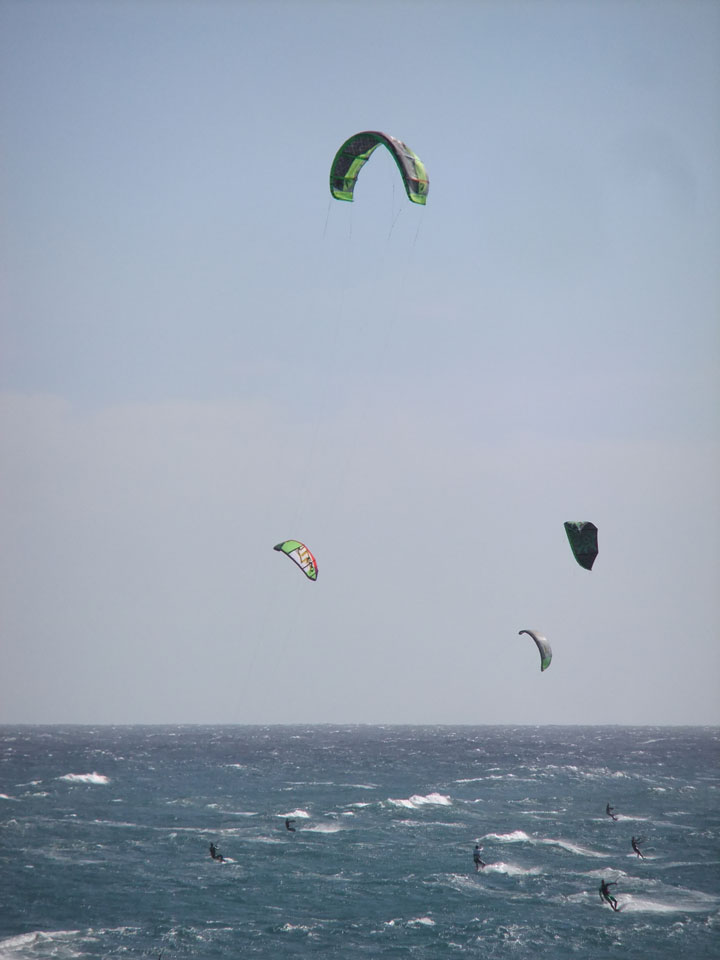 Ich schaute zum Strand um die Ecke – herrlicher Sonnenschein und viel Wind. Einige Leute lagen am Strand, ich spazierte herum und sah dann noch mehr Kite-Surfer und Windsurfer.