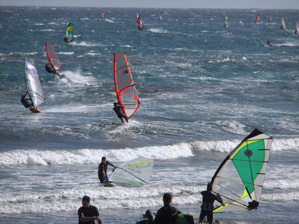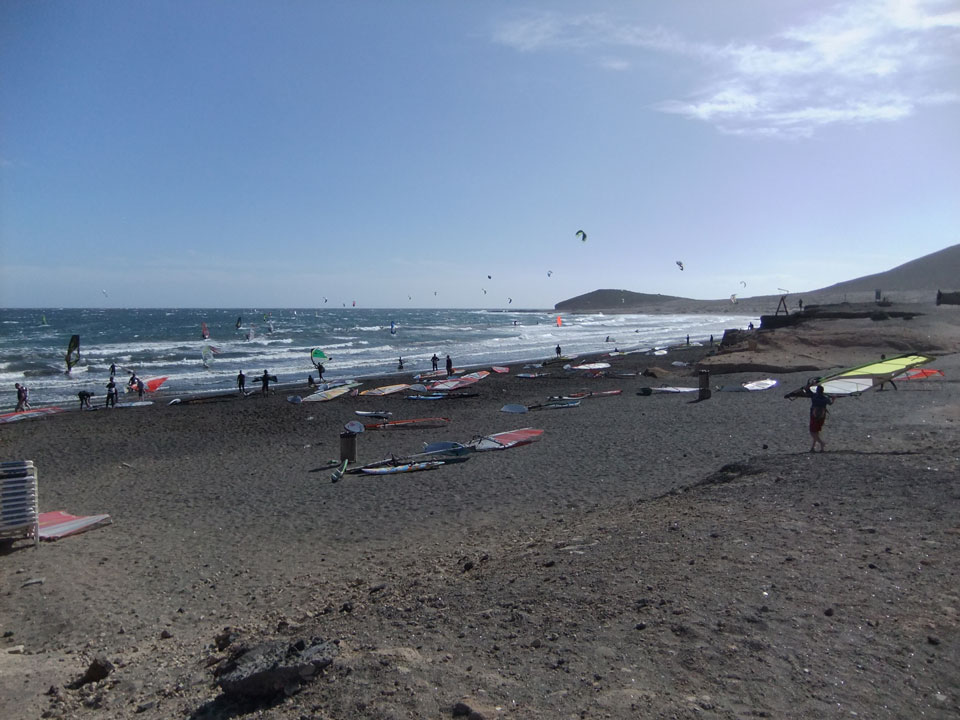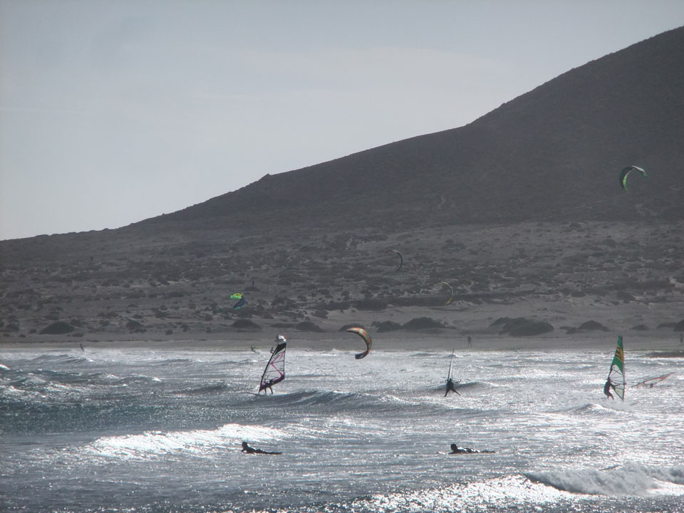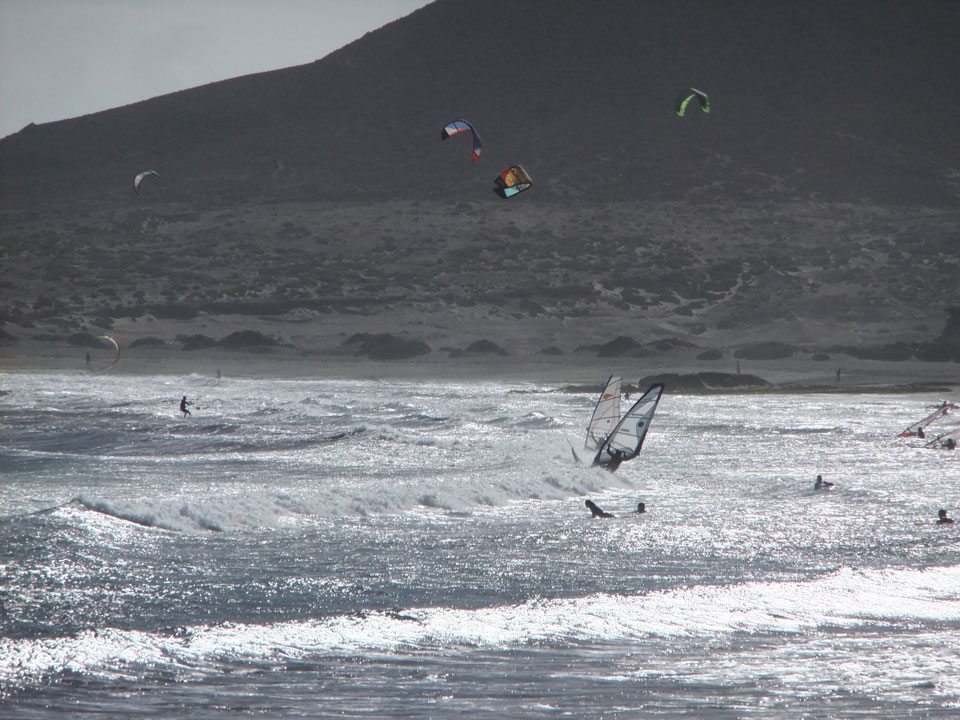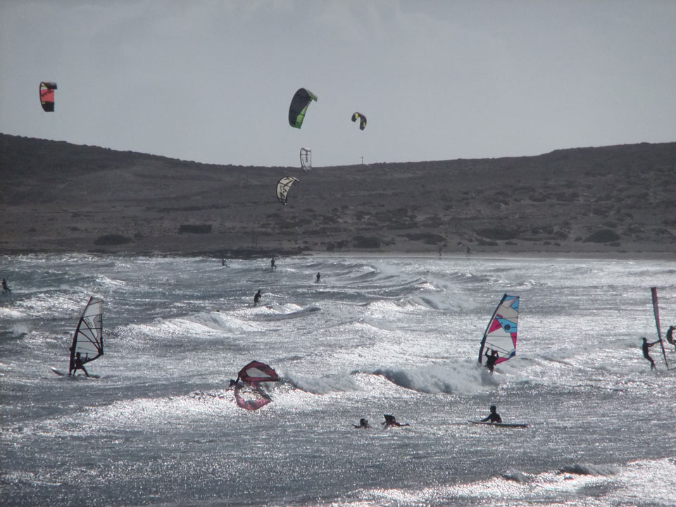 Ich schaute zum Strand um die Ecke – herrlicher Sonnenschein und viel Wind. Einige Leute lagen am Strand, ich spazierte herum und sah dann noch mehr Kite-Surfer und Windsurfer.