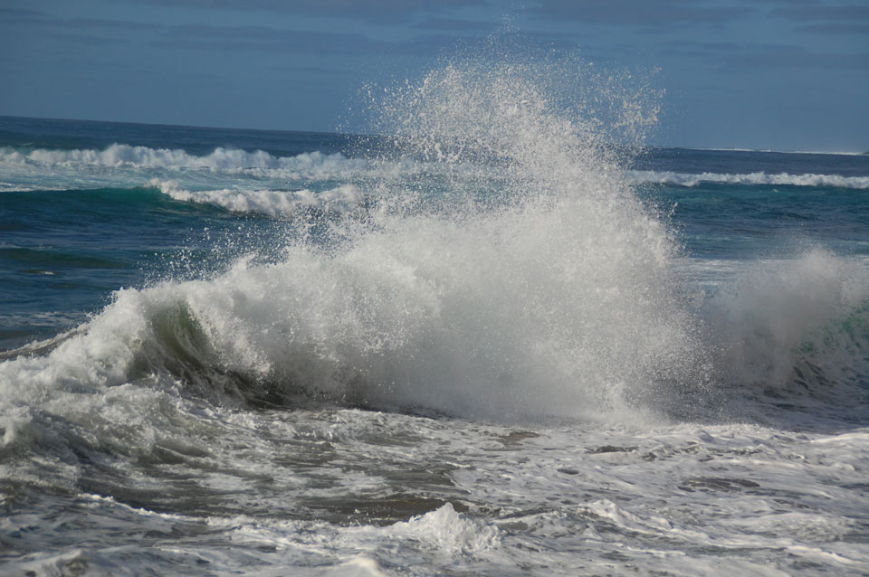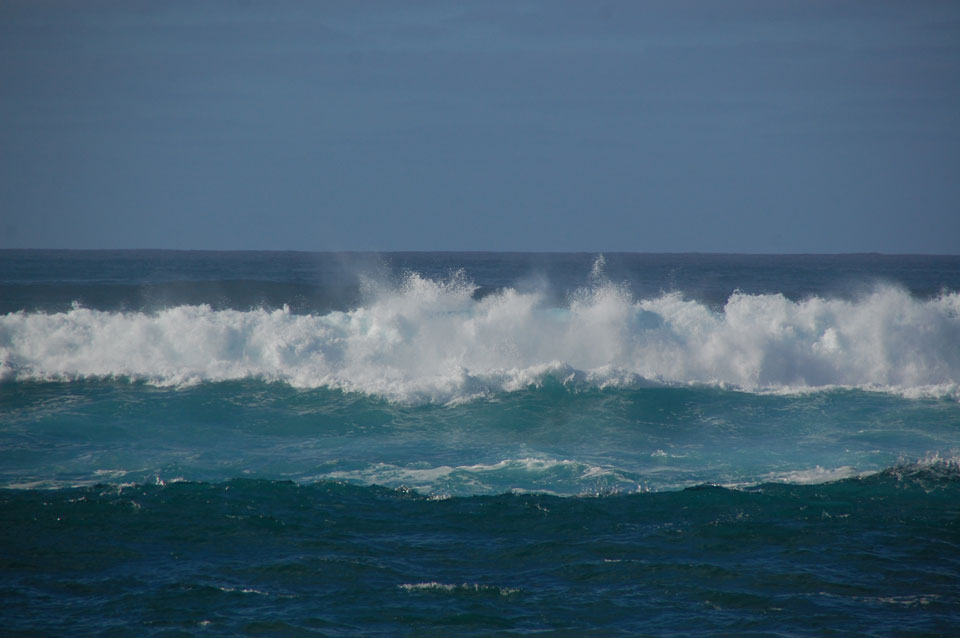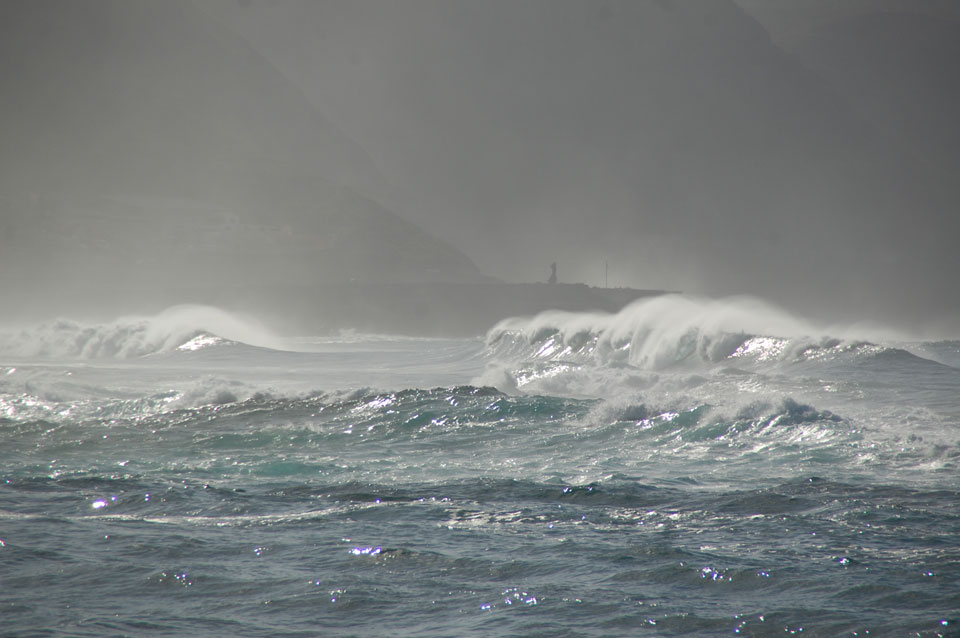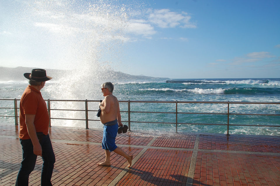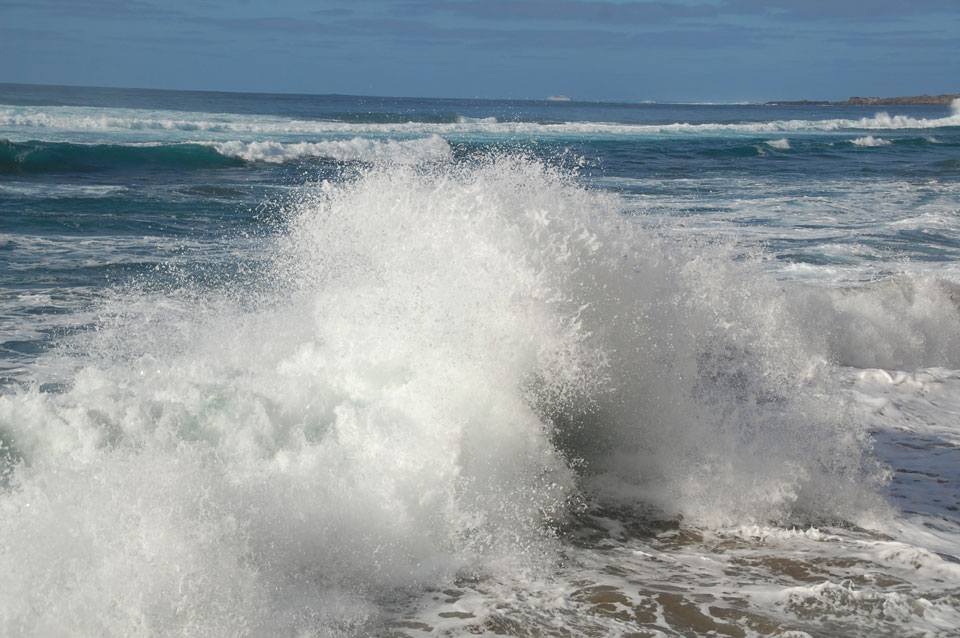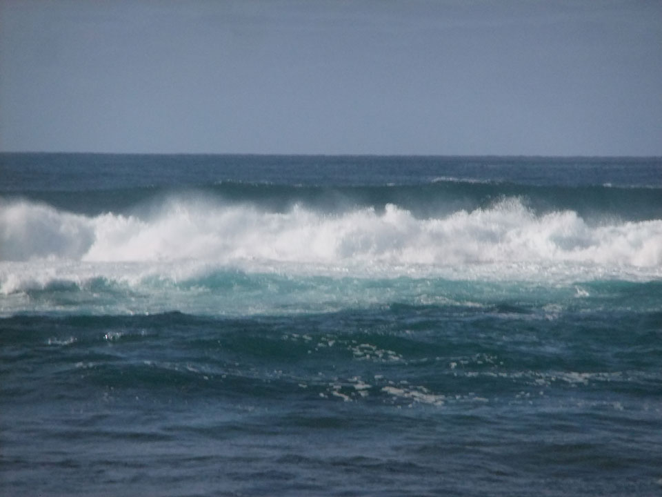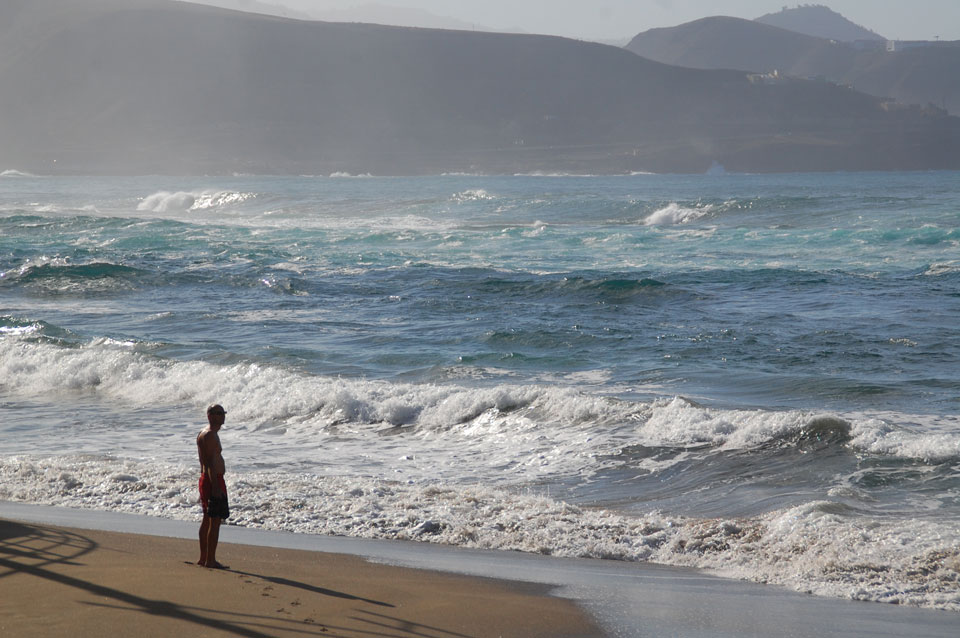 Morgens war die Stimme weg. Ich ging dann spazieren und alles besserte sich. Echt schönes Wetter, hohe Wellen – alles nett.