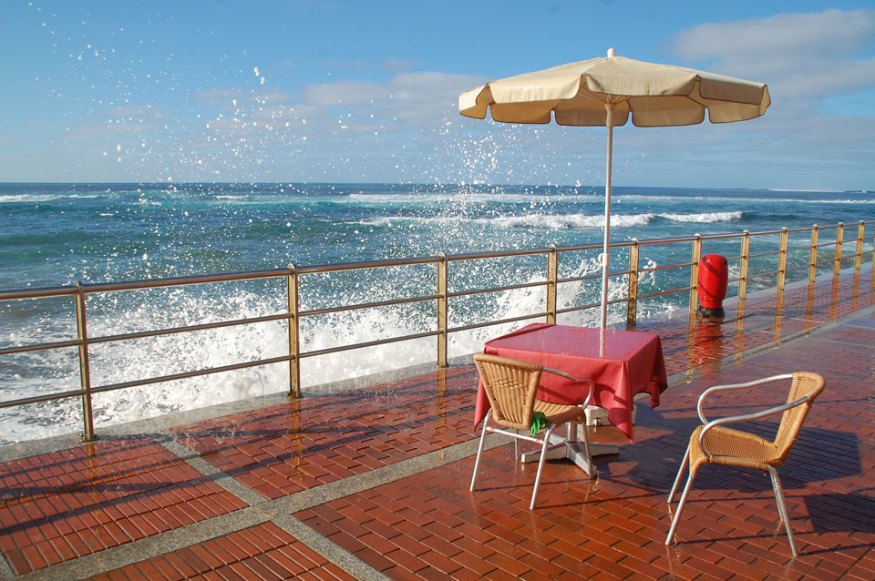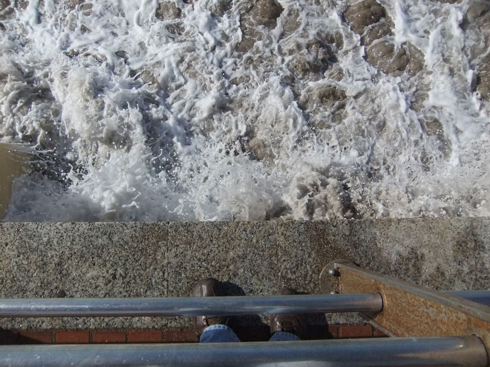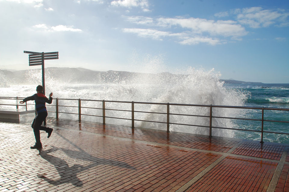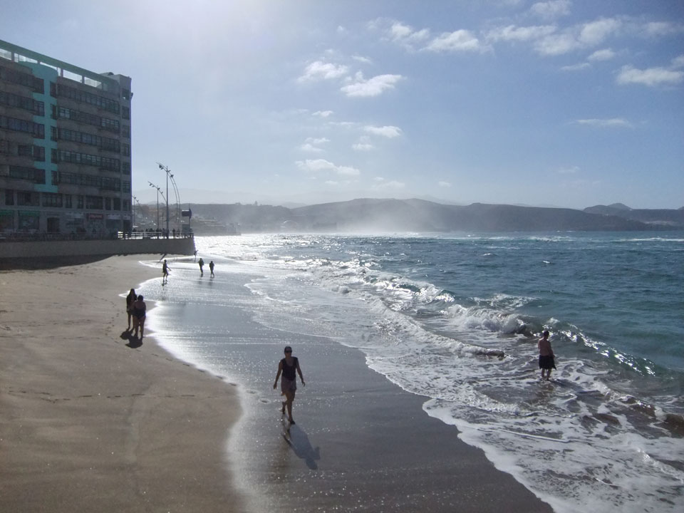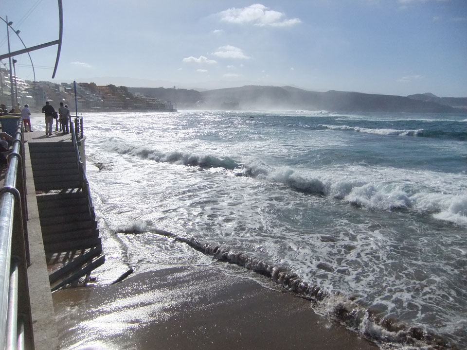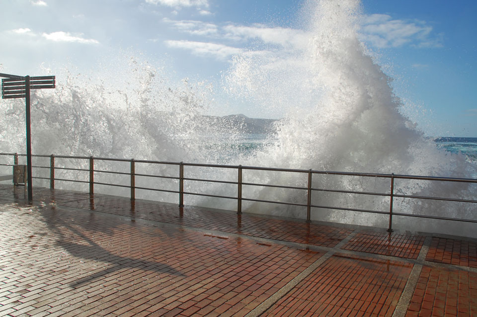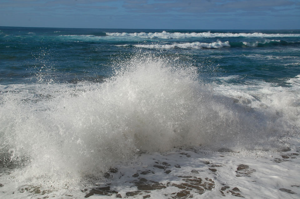 Morgens war die Stimme weg. Ich ging dann spazieren und alles besserte sich. Echt schönes Wetter, hohe Wellen – alles nett.