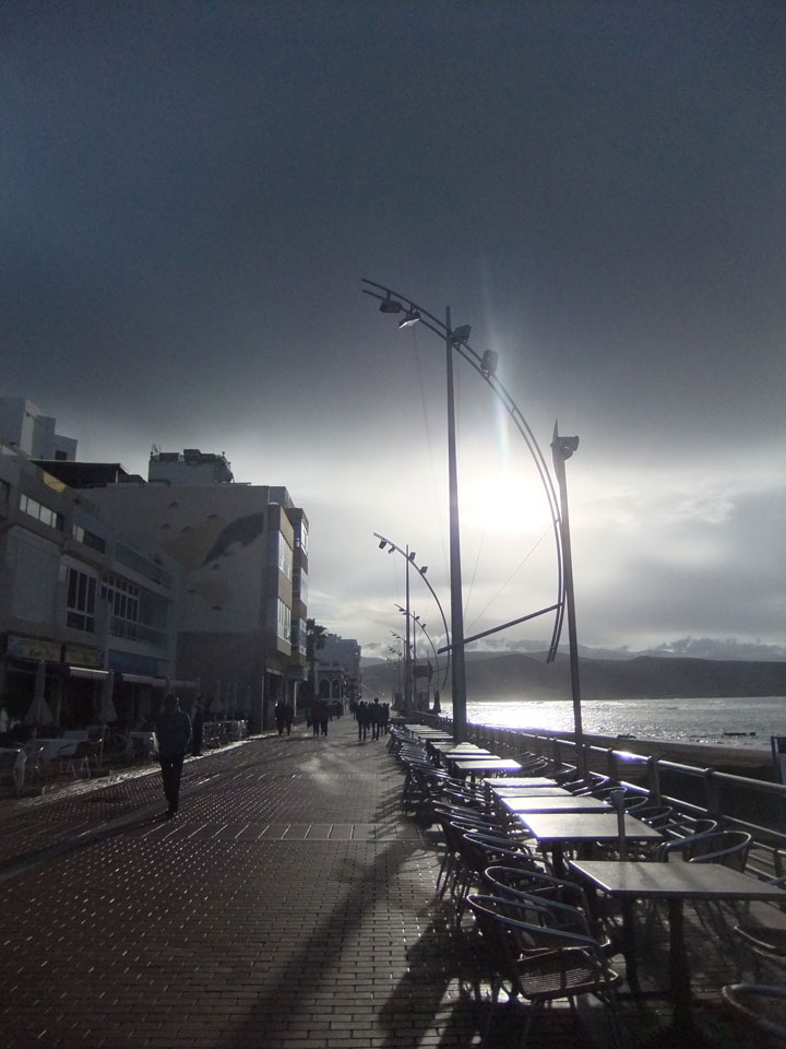 Das Wetter heute war nieselig, wie vorausgesagt. Alles beim alten mit der Gesundheit. Heute kein Strandwetter und damit auch absolut niemand am Playa.
