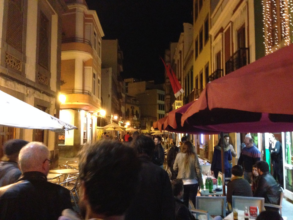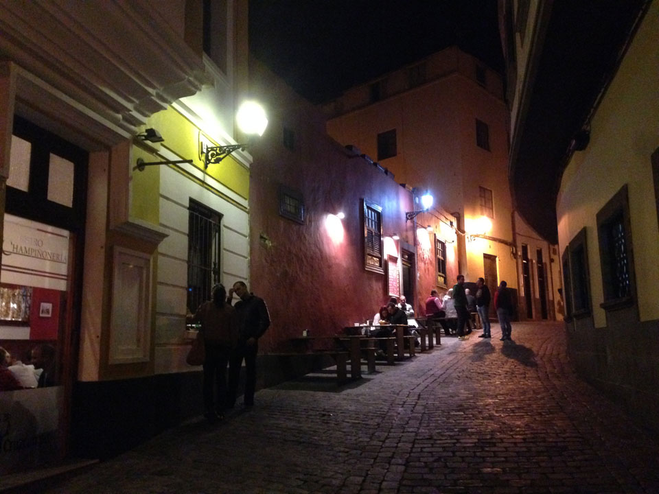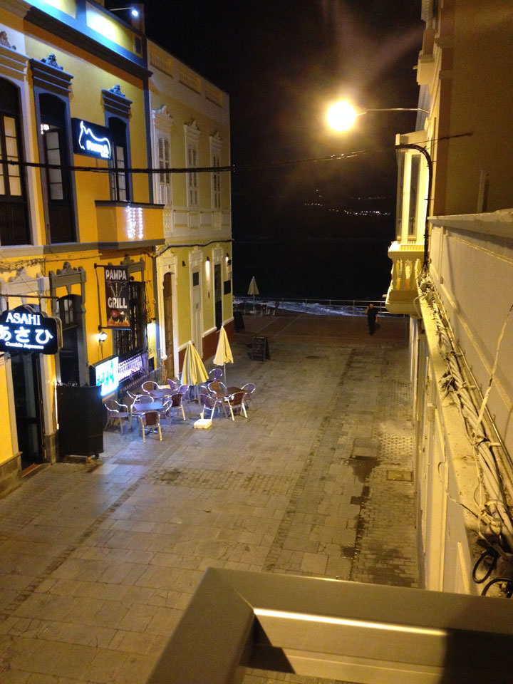 Dann am Mercado raus, heute Abend besonders pfiffig. Die ganze Streck in’s Zentrum Las Palmas‘ war vom Taxi aus auch ganz schön lang, Wir hingen in die Campiones Bar und ich hatte 3-4 Tapas dort. Draußen war’s mir einfach zu pfiffig. Ein paar Gespräche mit den Hostelleuten offenbarte auch interessantes. Da ewar der 19jährig Schottländer aus der Finanzbranche, der sich schon zur Ruhe setzen wollte. Wenn Leute das Geld für ihr Leben bereits verdient haben, scheinen die Kanaren schon eine gute Station zu sein. Ich sagte aber, dass es doch mit 29 noch Ziele im Leben geben muss und kam so auf den kolumbianischen Kumpel zu sprechen, der seine Olympia-Qualifikation versuchte.