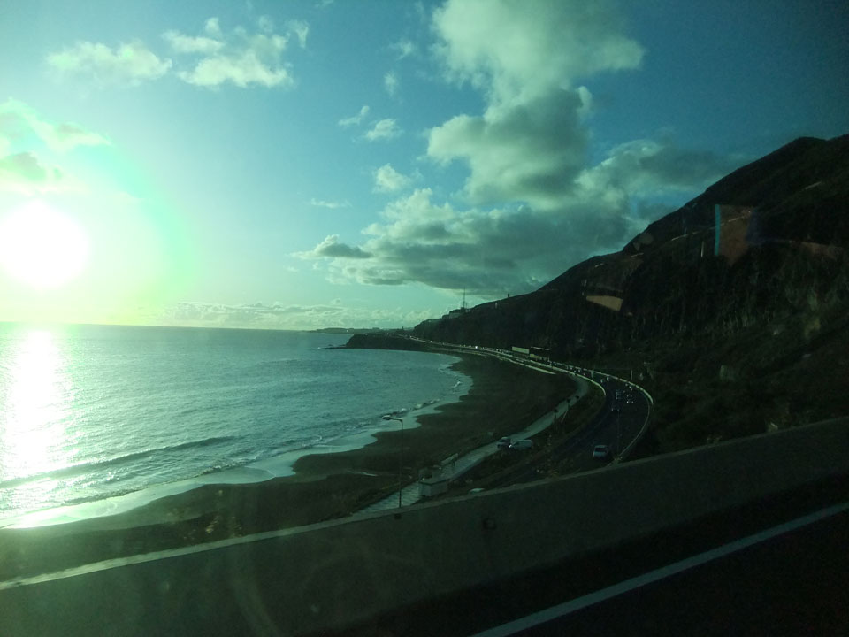 So war ich dann auch schnell wieder auf Teneriffa. Nur 20 Minuten Flug aber merklich wärmer. Dieses Mal wollte ich den Bus zum Hostel nehmen. Erst Bus 111, der auch schnell kam. Danach musste ich umsteigen und wartete auf die 11 oder 407. Ich stand da, dachte an Uber und nichts kam. Selbst Taxis fuhren hier bei San Ysidro kaum vorbei. Ich sah El Médano von dort oben aber verlor langsam die Geduld. Endlich kam ein Taxi und für ca. €5 war ich wieder vor’m Casa Grande.