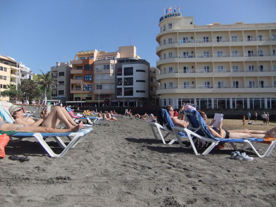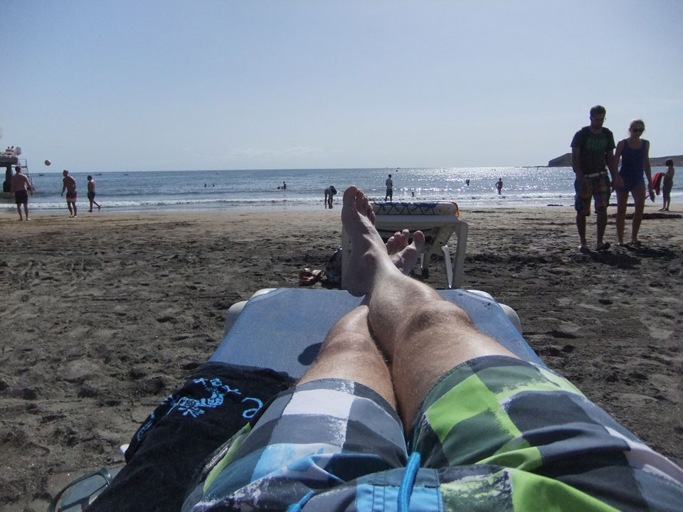 Das Einchecken war irgendwie komisch, denn ich hatte den 4Bett Dorm reserviert, sollte erst mal in der 8er. Also erst mal an den Strand und heute auf die Liege. Durch den wenigen Schlaf nickte ich da schnell in der Sonne ein. Schön warm und nochmal braten. Ich ging sogar mal in’s Wasser, was ich auf Gran Canaria nicht schaffte.