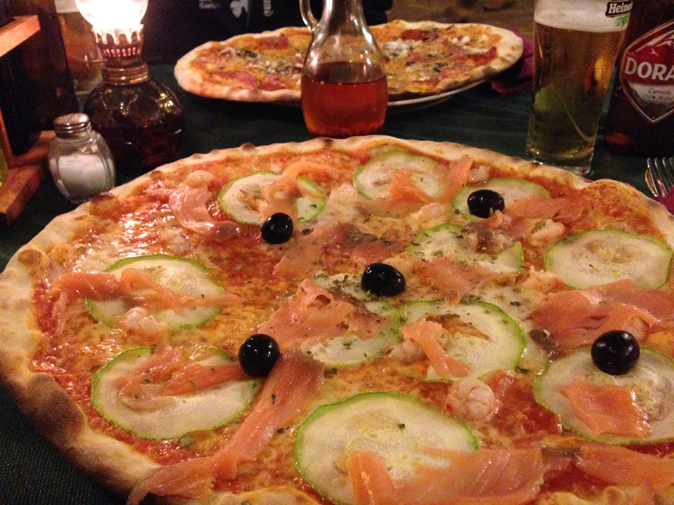 Nach genügend Stunden in der Sonne zurück in’s Hostel und nach einigem Hin und Her kam ich doch in den 4 Bett Dorm. Mit ’nem Russen aus Smolensk mit exzellentem Englisch plauderte ich dann den ganzen Freitag Abend. Ich erzählte von allem, er auch ein bissel. So schafften wir es in die empfohlene Pizzeria beim Hostel, dann noch bis nach Mitternacht Rum & Miel – 4 davon.
