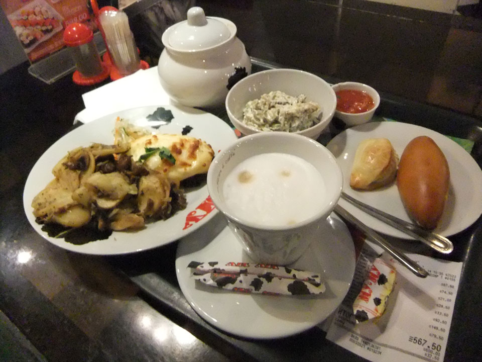 Mal was richtiges zu essen gab’s bei Mu Mu. Über 560 RUB auch hier aber alles ganz gut. Danach mit der Metro zur Kurskaya, wo ich mein Zugticket für morgen kaufte.