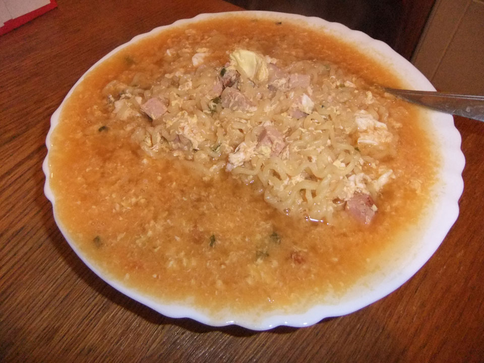 In Orel dann wurde ich abgeholt. Wir fuhren wieder in mein Apartment vom November. Erst mal saß ich eine Weile im Netz, kaufte dann für knapp RUB 500 ein paar Kleinigkeiten an der Ecke vor 23:00. Abendessen mit ’ner Tütensuppe aus Gran Canaria + Eier und Wurst. Schmeckte ganz OK.