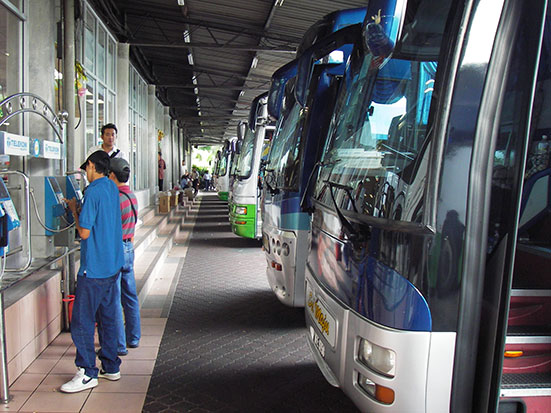 In der Hitze war niemand im Verkaufshäusel, dafür stand eine Handynummer da. Die Frau am Handy sagte, dass der nächste Bus erst 18:30 fährt. Jetzt war es kurz vor 13:00 also danke. Weiter schnaufte ich Richtung Paja Lebar MRT, um von dort zum Golden Mile Complex zu fahren. Dort sollten die meisten Busfirmen ihre Büros haben und gleich davor wegfahren. Durchgeweicht schnappte ich mir ein Taxi und war S$ 5.50 später da. Der Taxifahrer warnte mich noch vor weniger Security in KL. Muss ich aufpassen. Dann da, das klappte ja super.