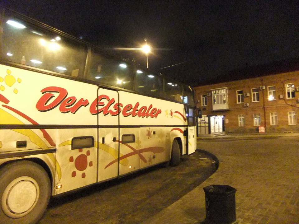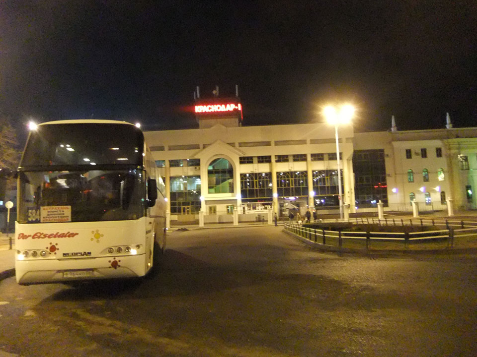 Der Zug war ca. eine Stunde früher in Krasnodar – um 4 statt 5, was mich um den Schlaf brachte. Ich ging aus dem Bahnhof, suchte was zum essen und sitzen. Fast nichts los aber eine kleine Kantine war offen.