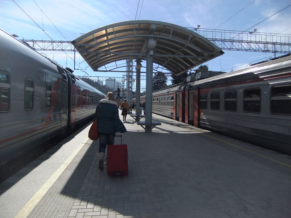 Ich ging schließlich zurück in den Bahnhof mit der Sicherheitskontrolle und dem Kosaken. Ging alles OK, dann arbeitete ich mit Android Hadny und iPad – schickte ein paar emails, soweit das ging. Meist nur FWDs, dann musste ich auch schon in den Zug. Viele Russen sind in Bewegung und wollen nach Sochi. Im Zug war eine Anwältin, die schon zum zweiten Mal dahin fährt. Sie zeigte Photos von Israel, wollte mir ein’s schenken. Danke aber das ist ihre Erinnerung – zu Brot und Wurst sagte ich nicht Nein.