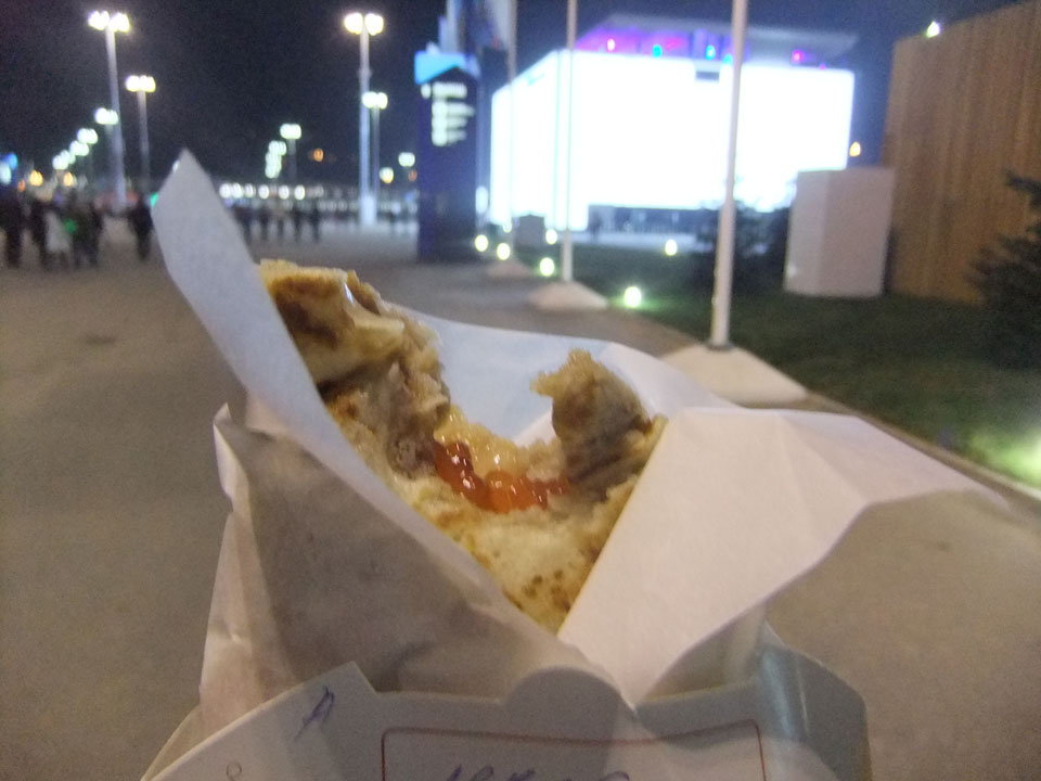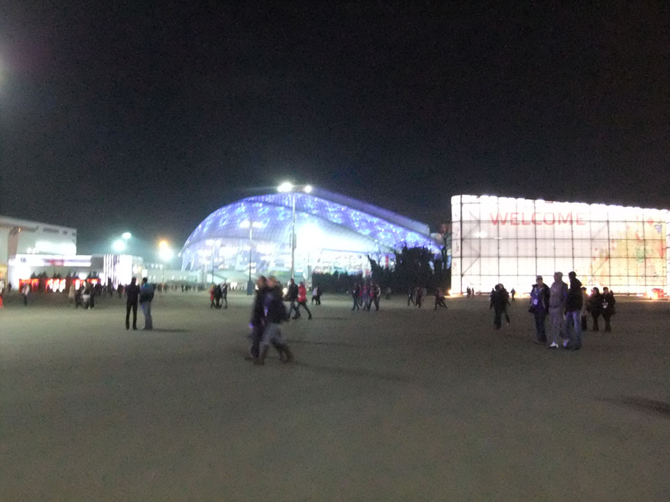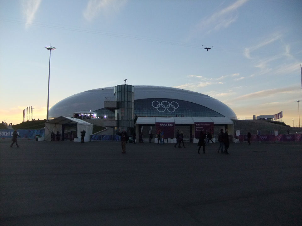 Die Uhr tickte. Erst 15:30 kam ich nach Adler – über eine Stunde Fahrt von Sochi. Die Leute hatten alle den Besucher-Pass umhängen. Mein 1000m Eisschnellauf-Finale war um 18:00 angesetzt und ich hatte weder Ticket noch Besucherpass mit Bild. Per GPS wählte ich eine günstige Haltestelle zum Hostelnahen Exit im supervollen Bus. Dann per Taxi und 100 RUB zum Hostel. Dort hatte ich Glück, denn ein paar Leute waren gerade auf dem Weg. Ohne jegliches Schild und Beschreibung hätte ich das unter der Adresse auch nicht gefunden. Seit meiner Abreise aus Orel waren nun 40 Stunden vergangen. Orel (Adler auf Russisch) nach Adler (auf Deutsch) also.