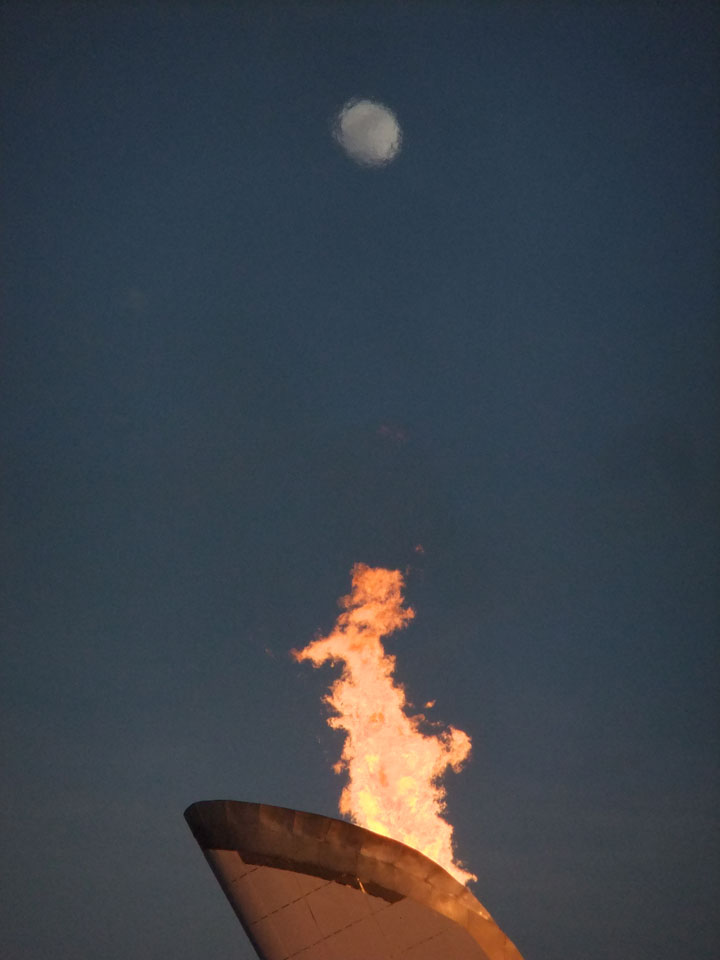 Ich joggte und joggte, kam in’s Schwitzen bei der Wärme. Ein weiter Weg zum anderen Ende. Die Sonne ging unter und schließlich nach 15 schnellem Gehen und Joggen kam ich zur Halle, wurde reingelassen. Es war gerade die Pause vor dem zweiten Teil der Wettbewerbe, eine Eismaschine drehte Runden. Mein Sitzplatz war frei und verschwitzt saß ich dann und durfte die zweite Hälfte der 1000m Wettbewerbe miterleben. Super!