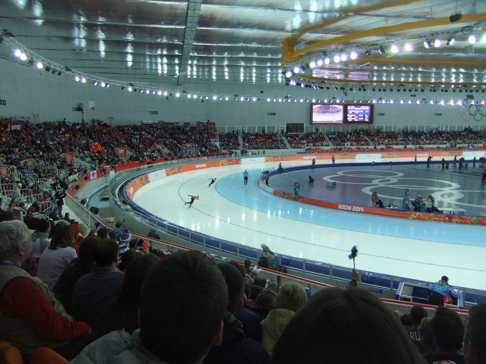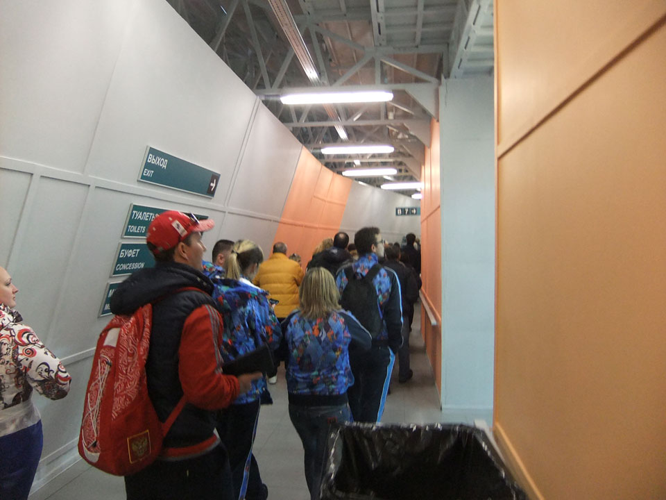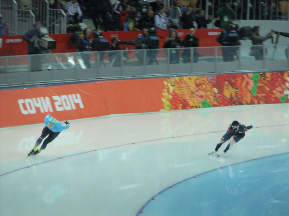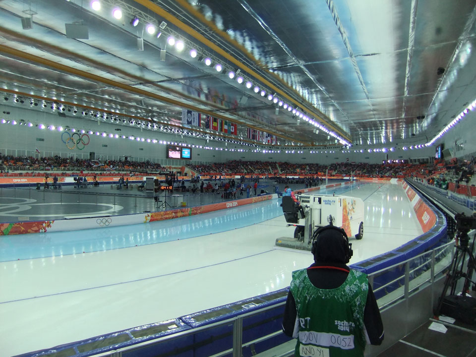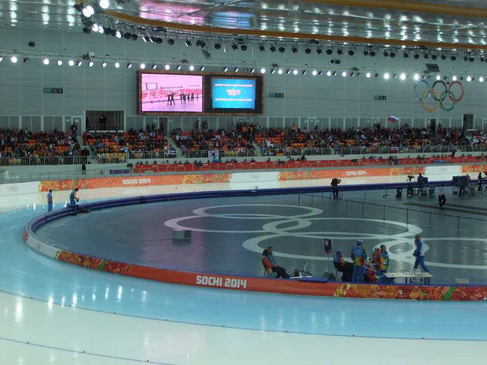 Ich hatte den Eisschnellauf-Wettkampf schon fast aufegegeben und dann wurde doch noch alles gut. Sie fragte, wann denn mein Wettkamp sei – ich sagte in 15 Minuten. Da wollte sie mir helfen und sprach mit einem Ordner und ich wurde vorgelassen. Die Russen wollen ihr Land gut präsentieren und stehen dann auch zurück, wenn ich als Ausländer die Schlange überspringe. Sehr nett!
