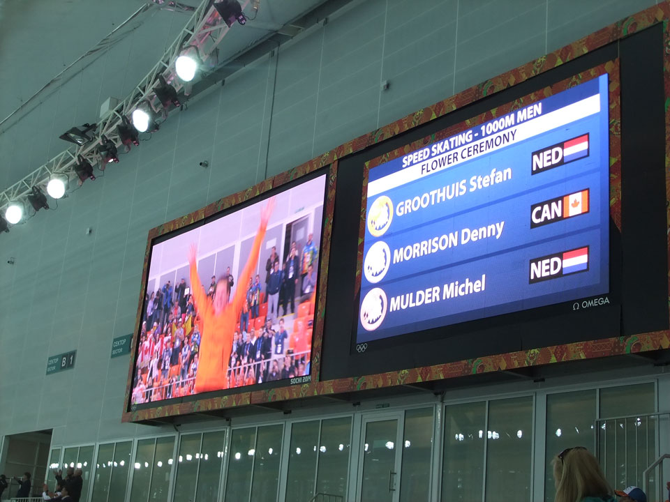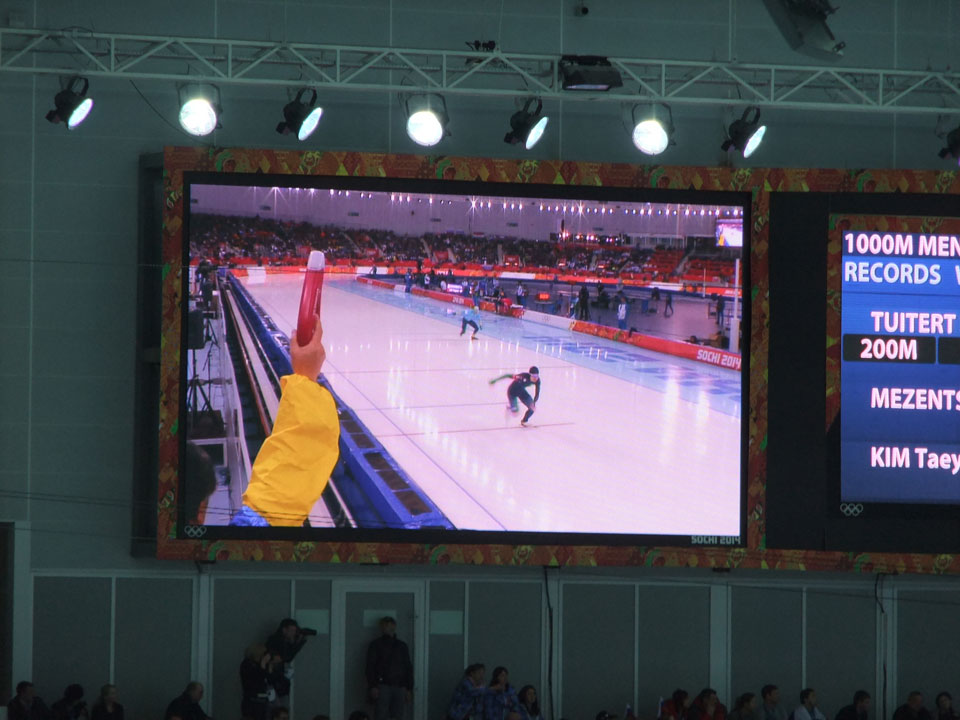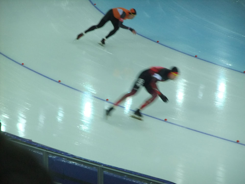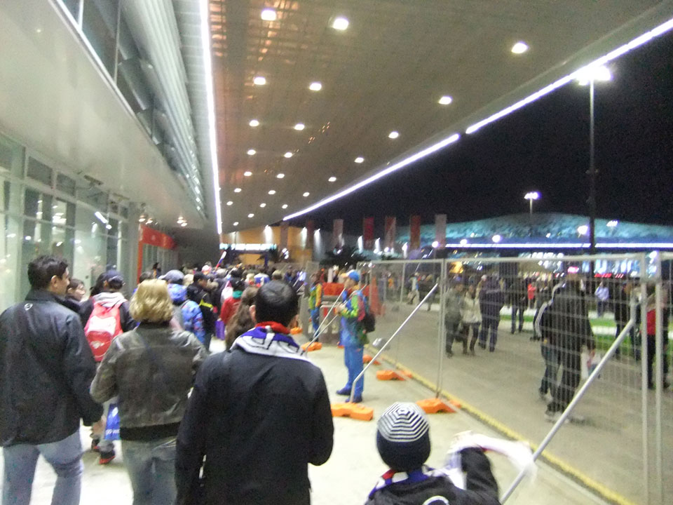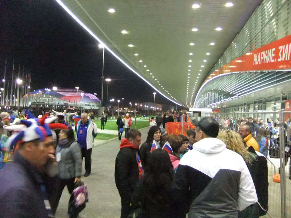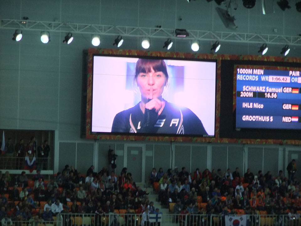 Ich hatte den Eisschnellauf-Wettkampf schon fast aufegegeben und dann wurde doch noch alles gut. Sie fragte, wann denn mein Wettkamp sei – ich sagte in 15 Minuten. Da wollte sie mir helfen und sprach mit einem Ordner und ich wurde vorgelassen. Die Russen wollen ihr Land gut präsentieren und stehen dann auch zurück, wenn ich als Ausländer die Schlange überspringe. Sehr nett!