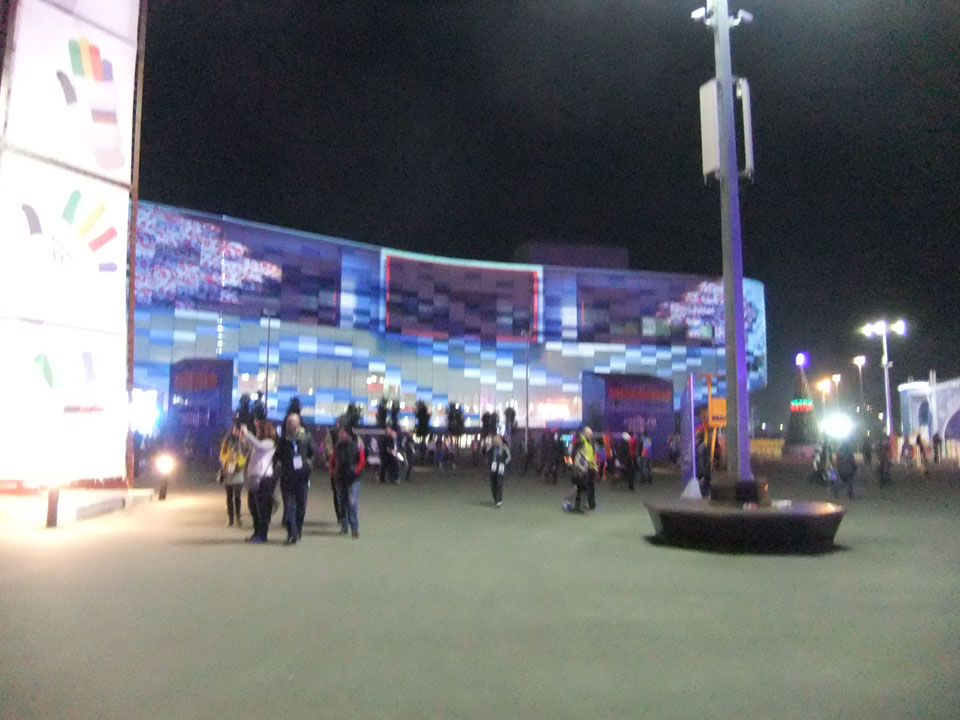So kam ich dann also am olympischen Park an – ca. 18:25 inzwischen. Wow! Die Eisschnellauf Halle war weit weit weg. Ich hätte nie gedacht, wie groß das Areal hier in Wirklichkeit sei. Ein Wahnsinn, das für die Olympischen Spiele zu bauen.
