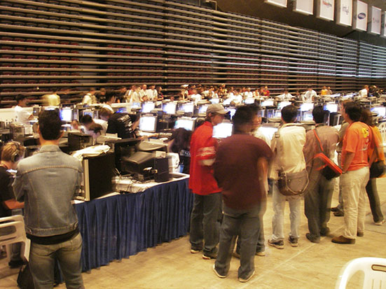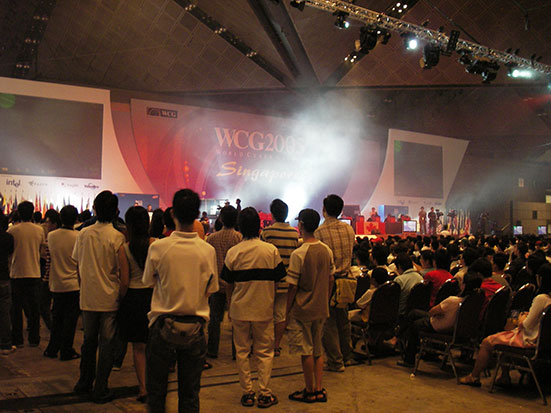 Die World Cyber Games 2005, hier und jetzt in Singapur. Nach einigen Tintenfisch-Happen im malayischen Restaurant fuhr ich mit dem Taxi nach Suntec City.