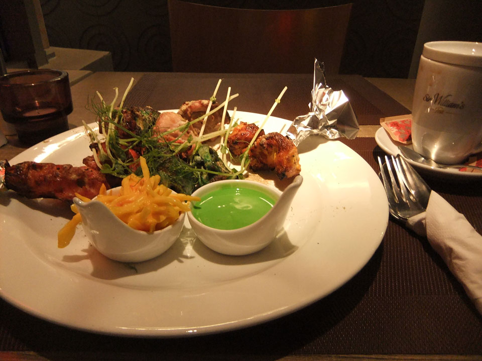 Abendessen gönnte ich mir im indischen Restaurant „Masala“. Das war zum Samstag gut gefüllt, Glück, dass man mich auch ohne Reservierung platzierte. Eigentlich wollte ich heute mehr vegetarisch bleiben, nahm dann aber doch die Grillplatte. Auch gut – PLN 60.