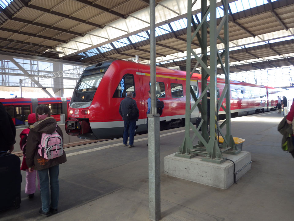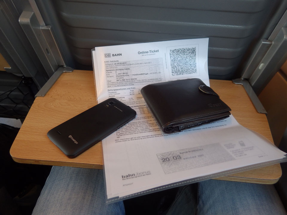 Eine kurze Nachruhe, dann musste es schon los gehen. Ich wurde zum Bahnhof gefahren, der Abschied wie immer nicht einfach. Das Ticket hatte ich, zuerst ging’s nach Leipzig. Im IC dann weiter nach Frankfurt, spielte ich mit der WG-3. Schon ganz nett der Highspeed Movie Modus.