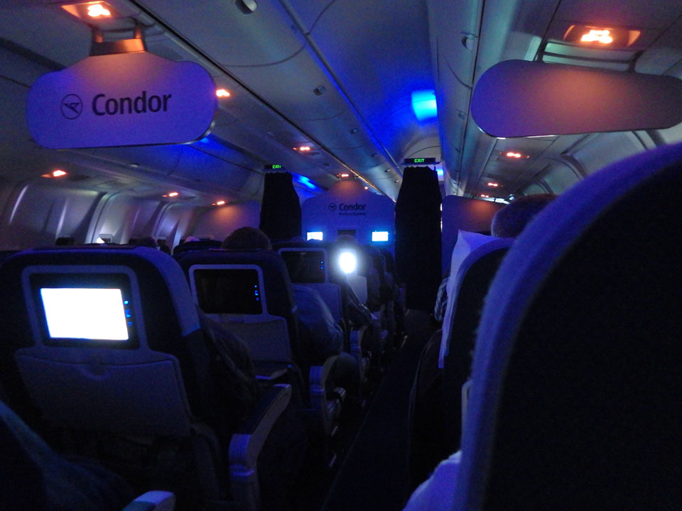 So ging’s mit Condor dann los – Richtung Westen und Süden nach Santo Domingo. Ich kam mit einem Russen neben mir in’s Gespräch. Er war auf Geschäftsreise in die Dominikanische Republik, sprach ganz gut Englisch. Ich konnte so einiges erzählen, von Orel, der Videospielindustrie usw.. Ich schlief auch 1-2 Stunden, jedenfalls ging die Zeit vorüber. Die 10 Stunden sitzen beanspruchen mein Hinterteil dennoch zu viel.